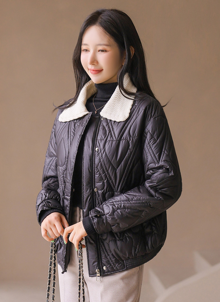 Love Quilted Knit Collar Padded Jacket