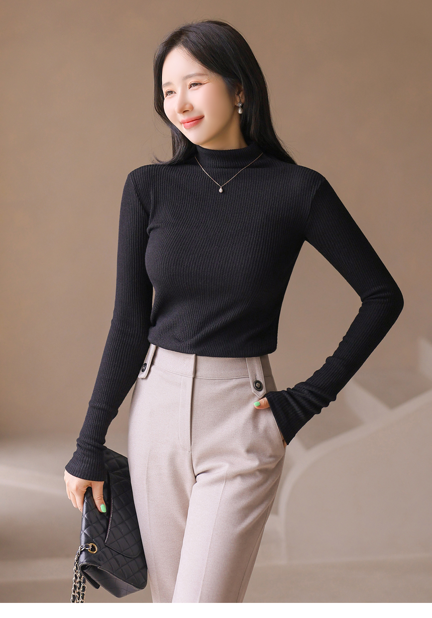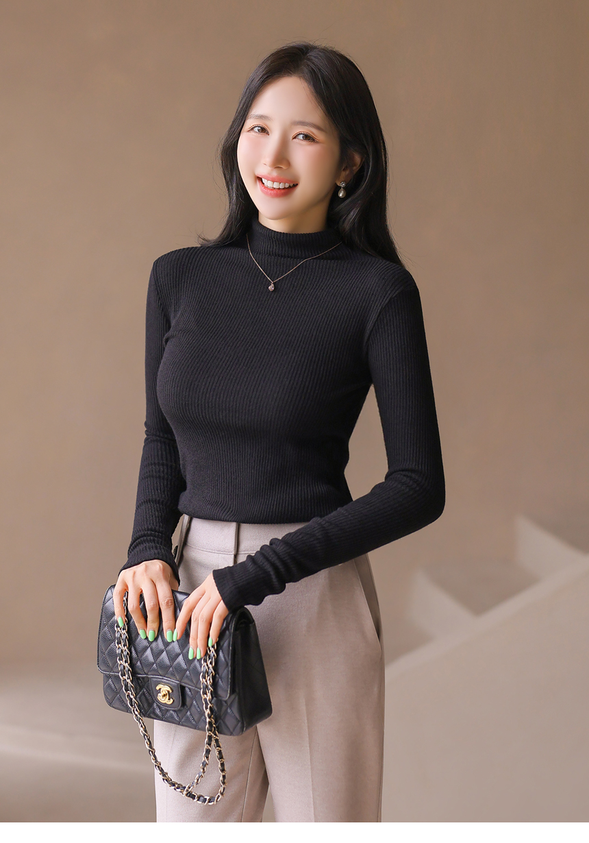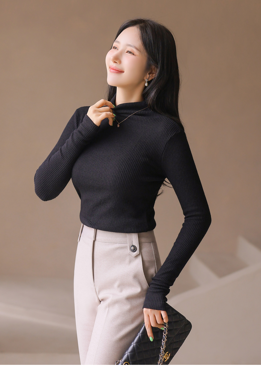 (5 Colors) Soft Ribbed High Neck Knit Top