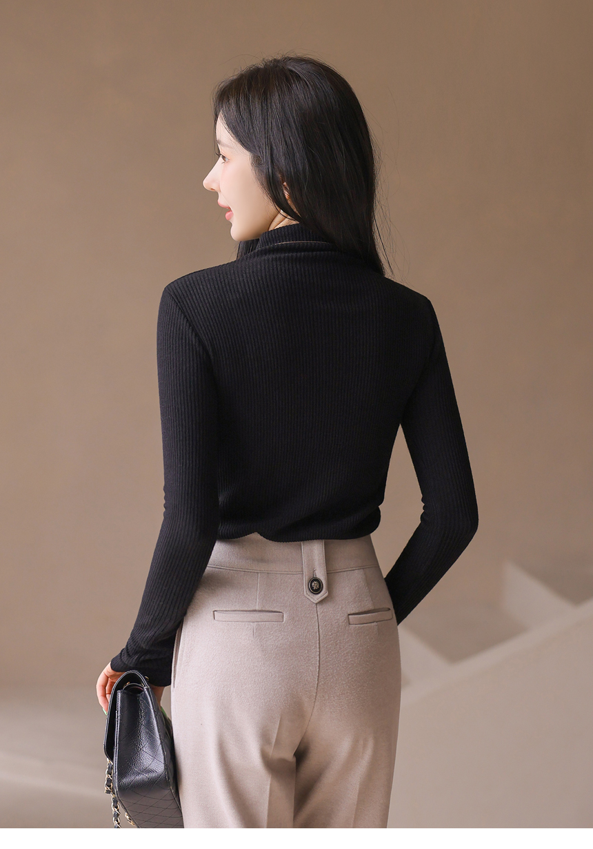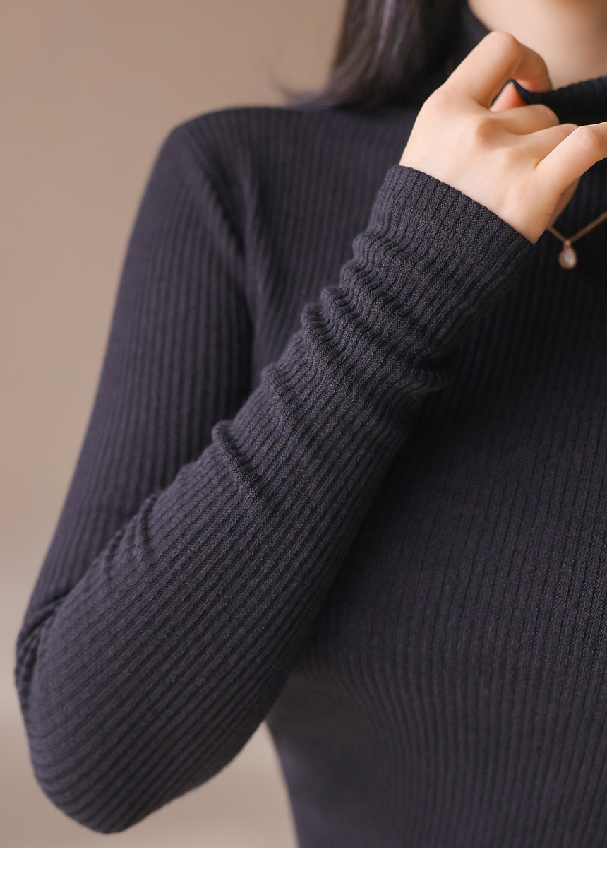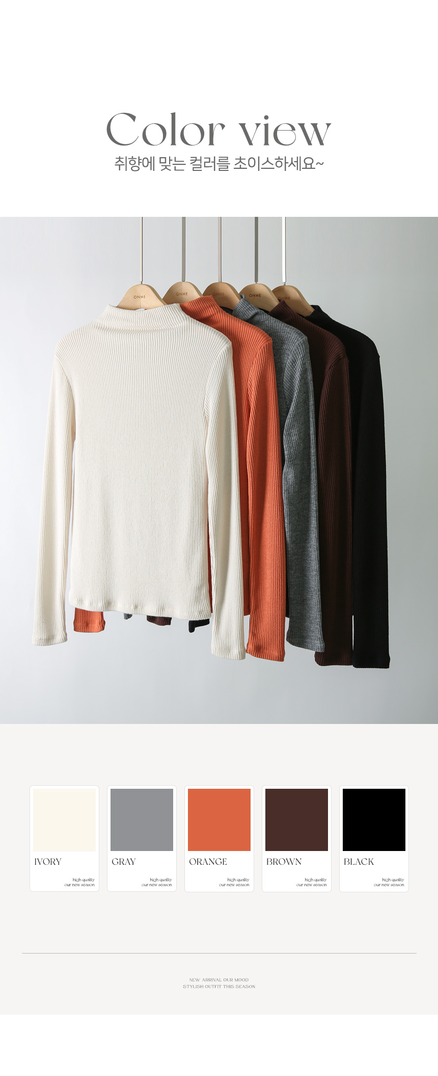 (5 Colors) Soft Ribbed High Neck Knit Top