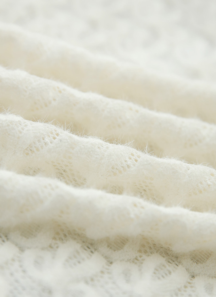 [Elegant lace with ribbon motifs adds a touch of romance. Soft brushed texture keeps you warm while staying light and breathable.]