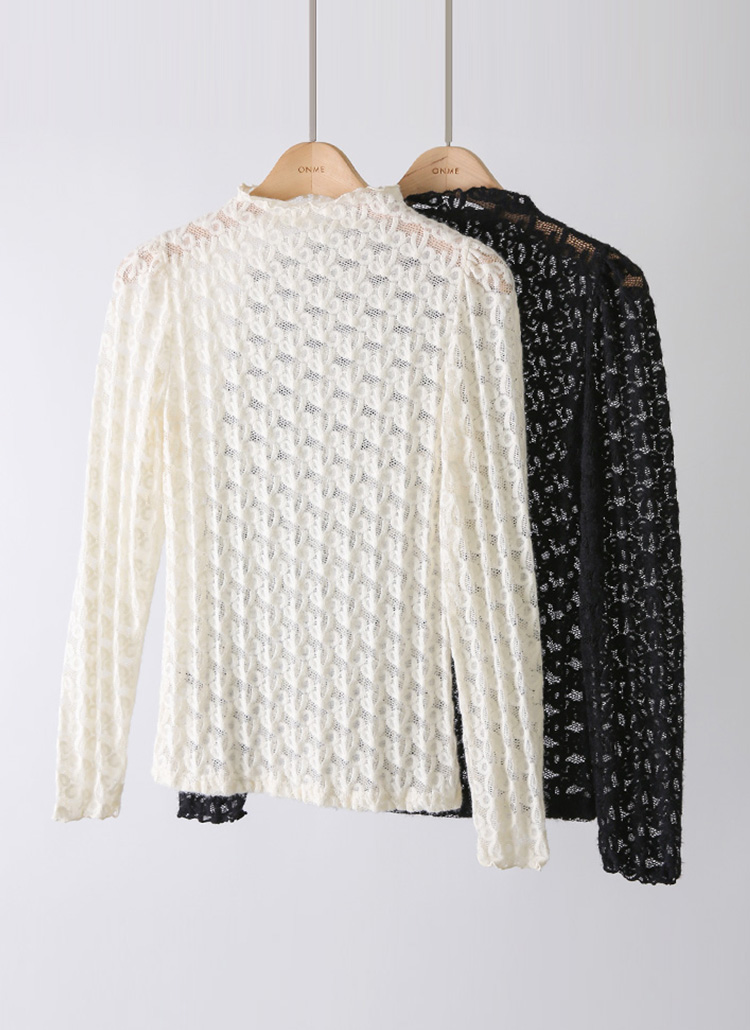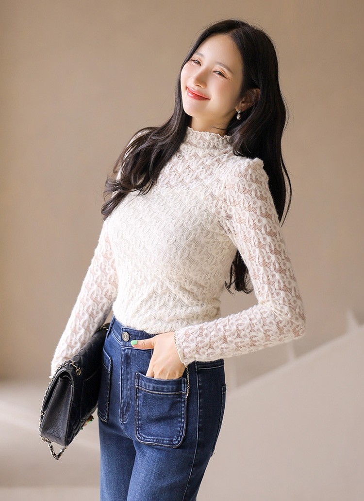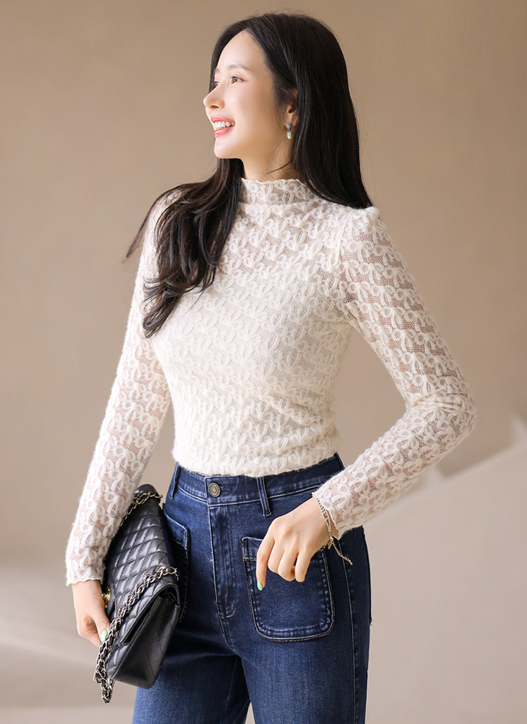 [LouisAngel] Fuzzy Bow Lace Mock Neck Top