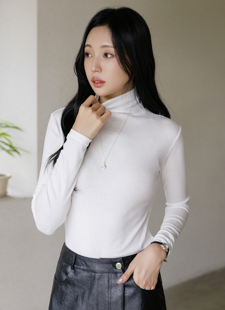 [The Onme] (7 Colors) Soft Tencel Slim Turtleneck Top