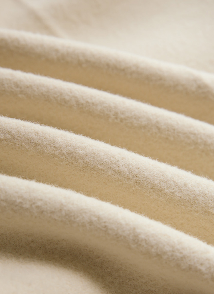 [Soft, cozy jacket crafted from plush textured fabric. Features a removable knit collar and adjustable hem for a feminine, relaxed fit.]