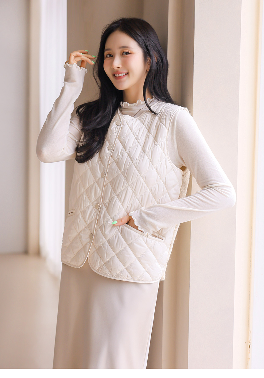 [A cozy hybrid vest with soft knit back and light padding. Warm yet lightweight, perfect for layering under or over any outfit.]