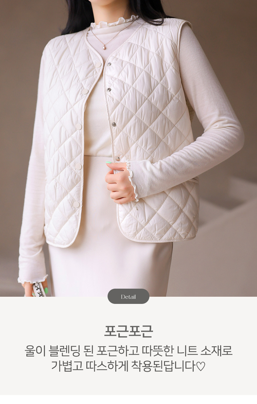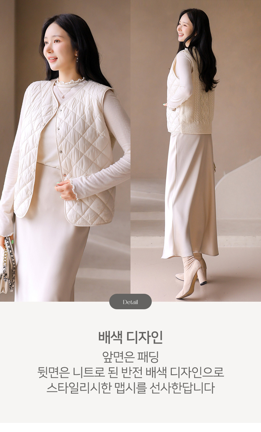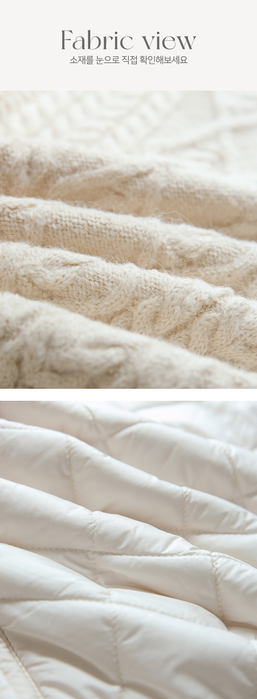 가벼운 웰론 충전재와 니트 배색으로 따뜻하고 스타일리시한