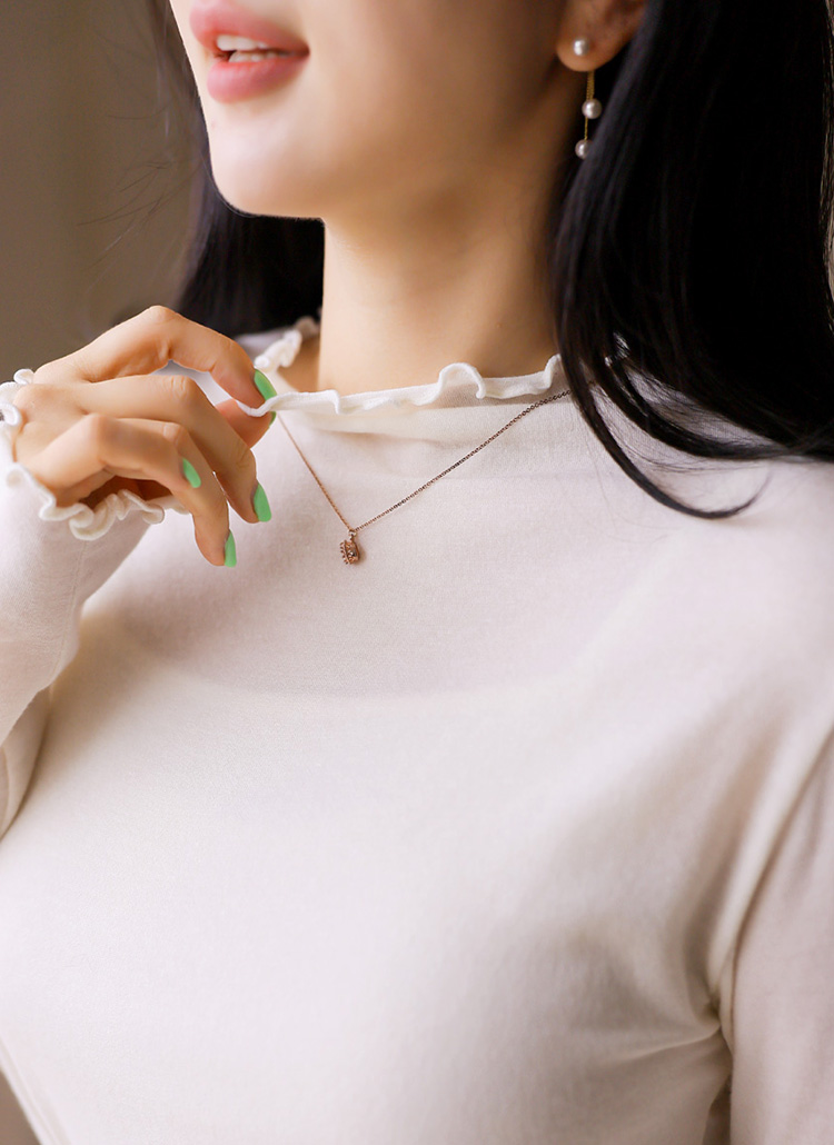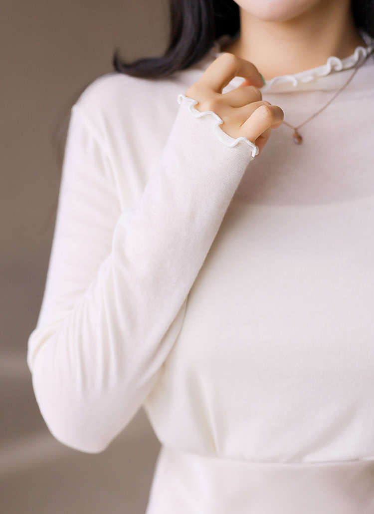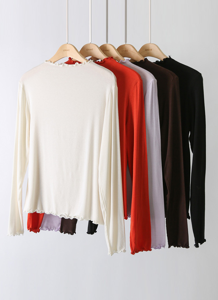 (5 Colors) Ruffle Edge Long Sleeve Layering Tee