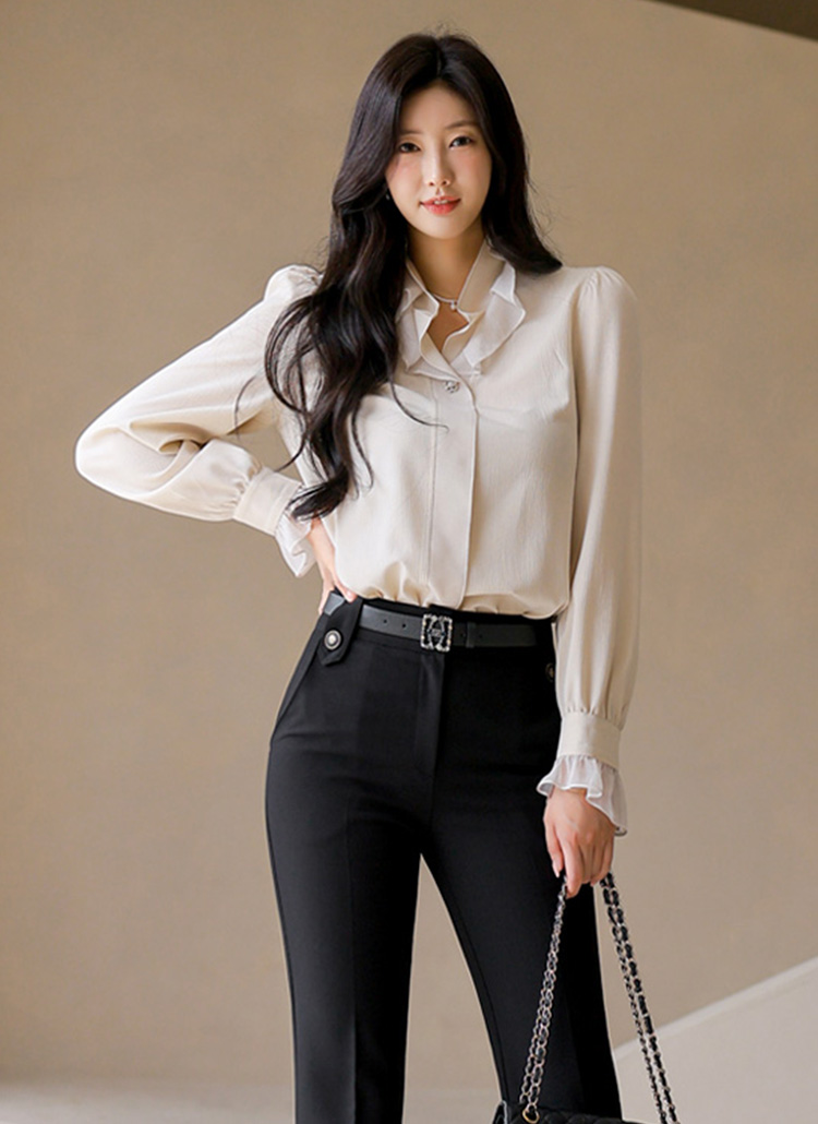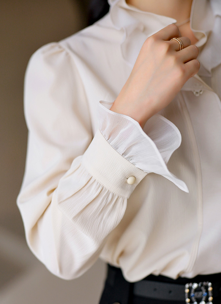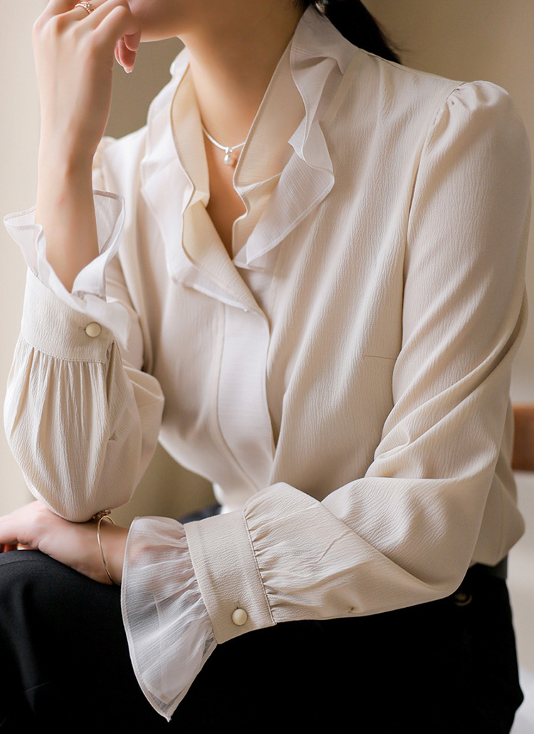 [LouisAngel] Delicate Ruffle Detail Blouse (BEIGE)