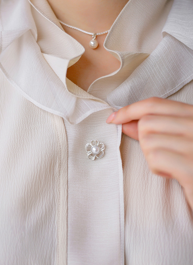 이중 러플넥으로 목선을 여리고 섬세하게 돋보여주며