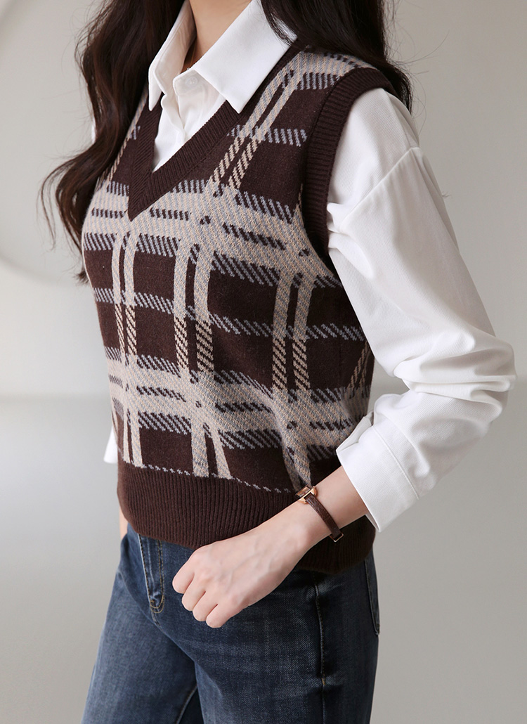 니트 베스트는 체크 패턴으로 포인트를 주어