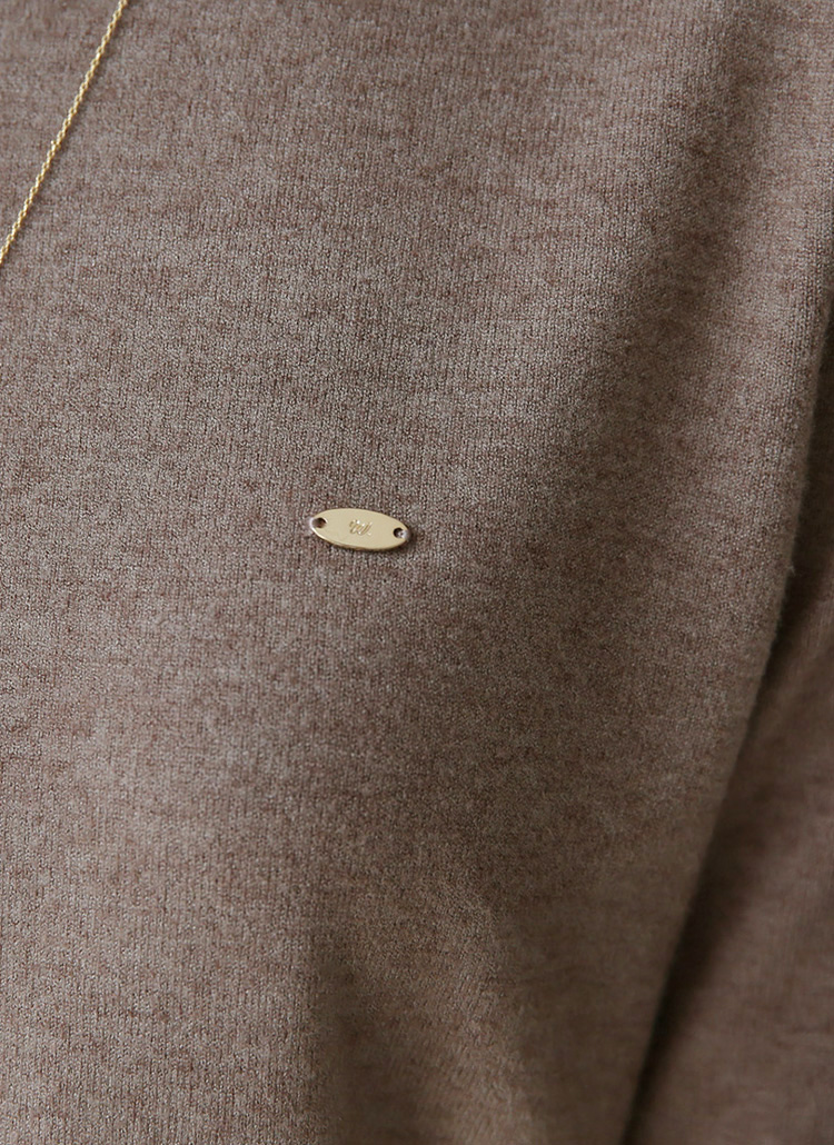 [Smooth and lightweight, this viscose-blend mock neck knit with gold accent delivers timeless elegance and everyday comfort.]