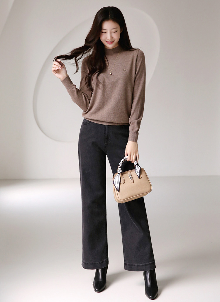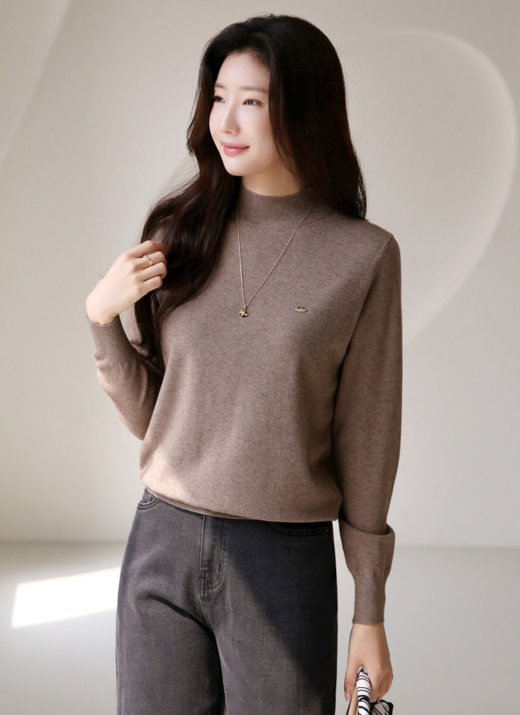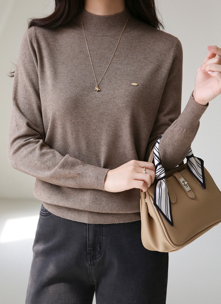 (8 Colors) Classic Soft Knit Mock Neck Knit Top