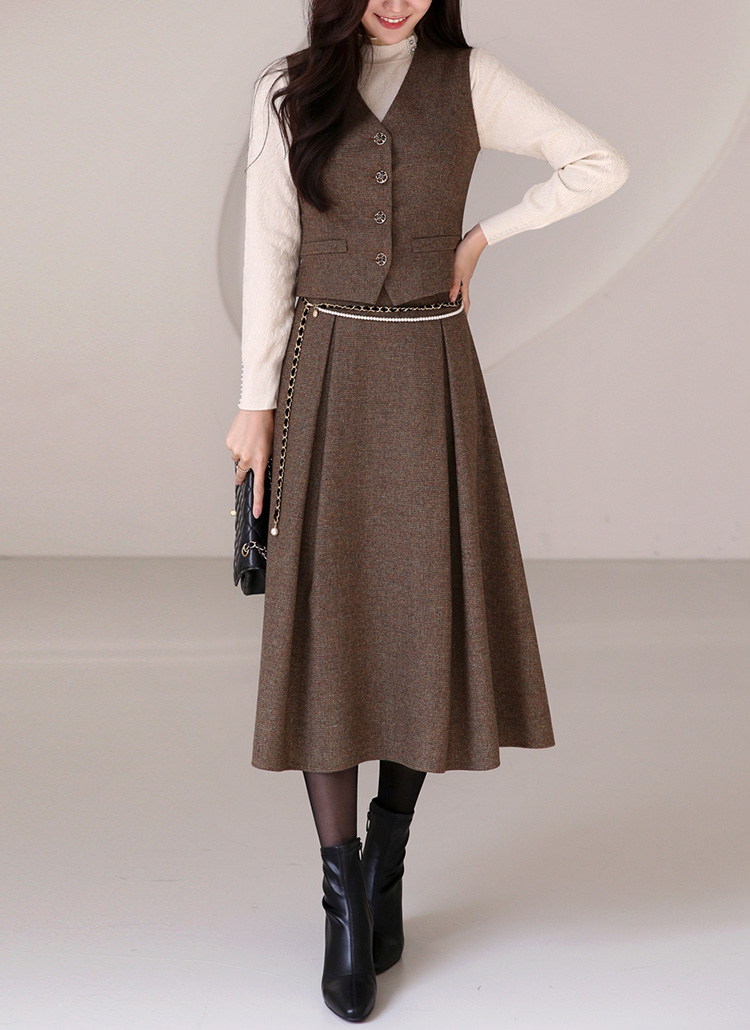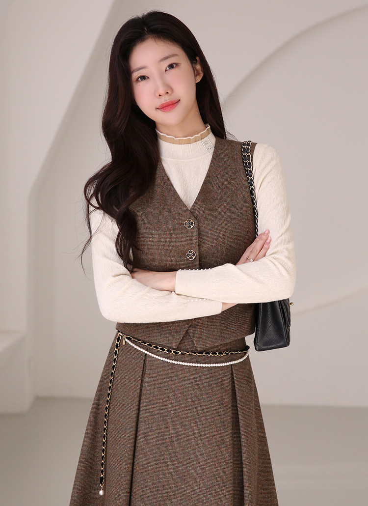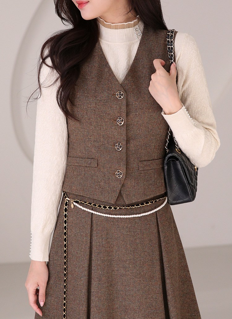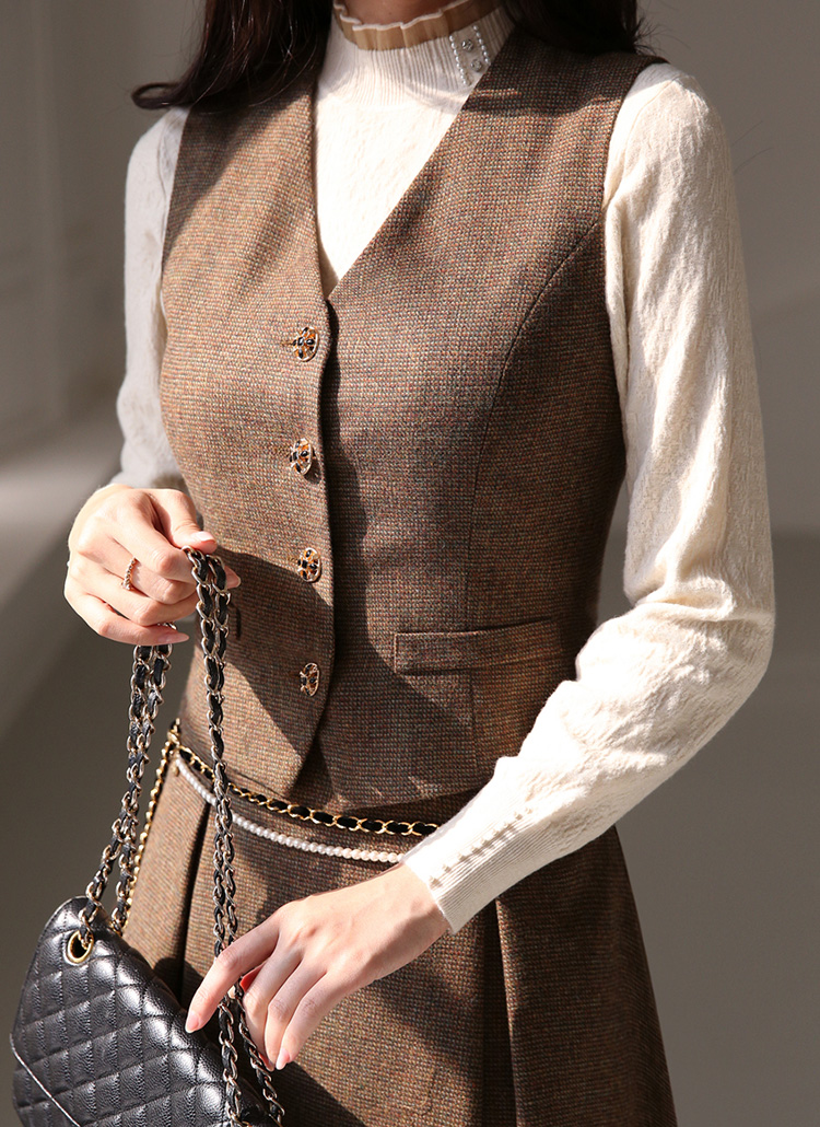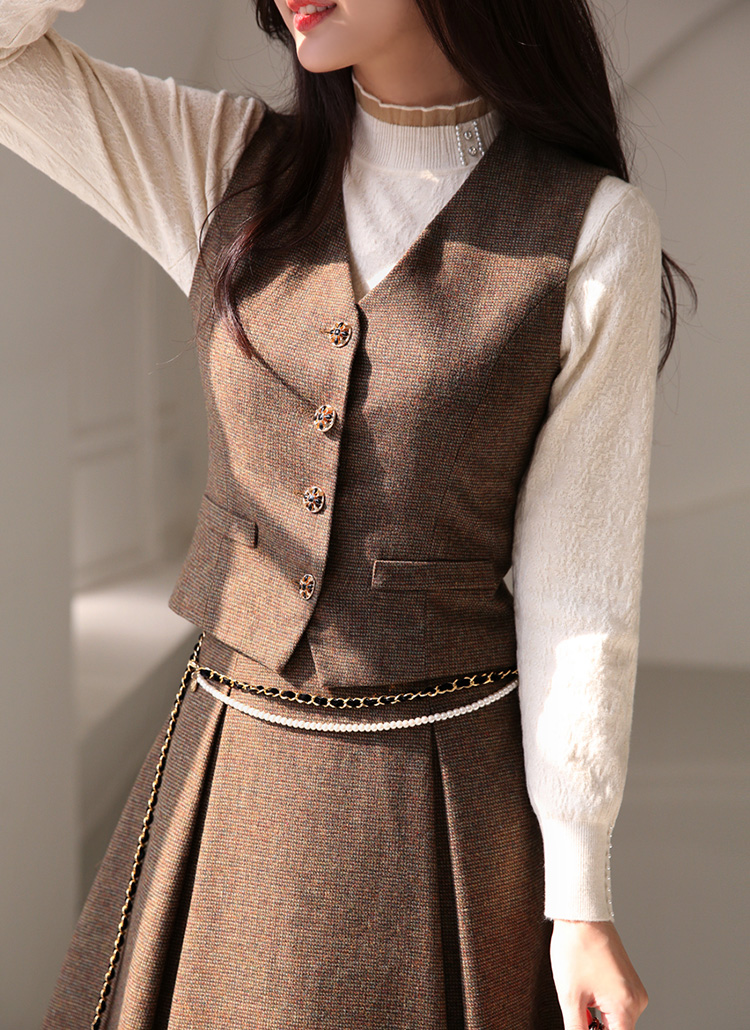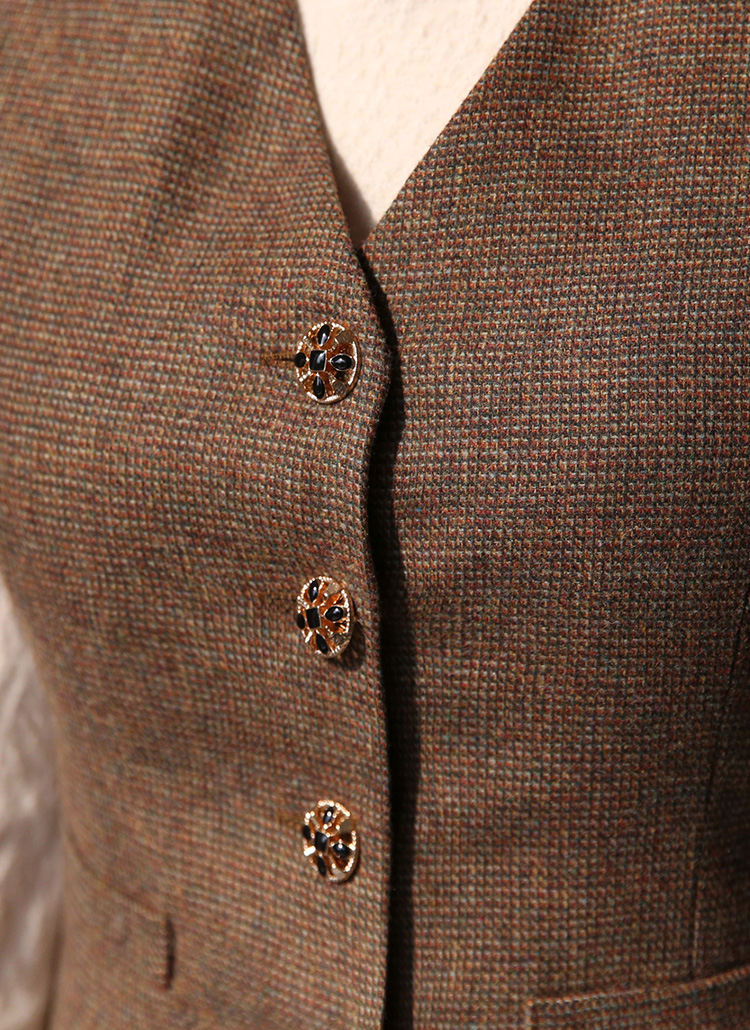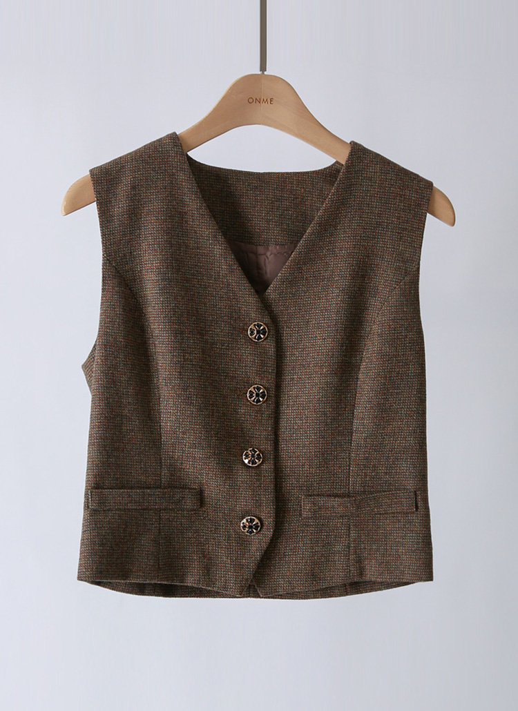[Tailored wool-blend vest with jewel buttons and warm melange texture, creating a refined silhouette for timeless layering.]