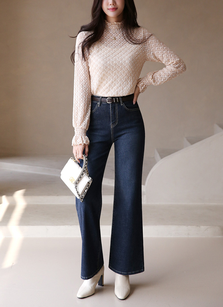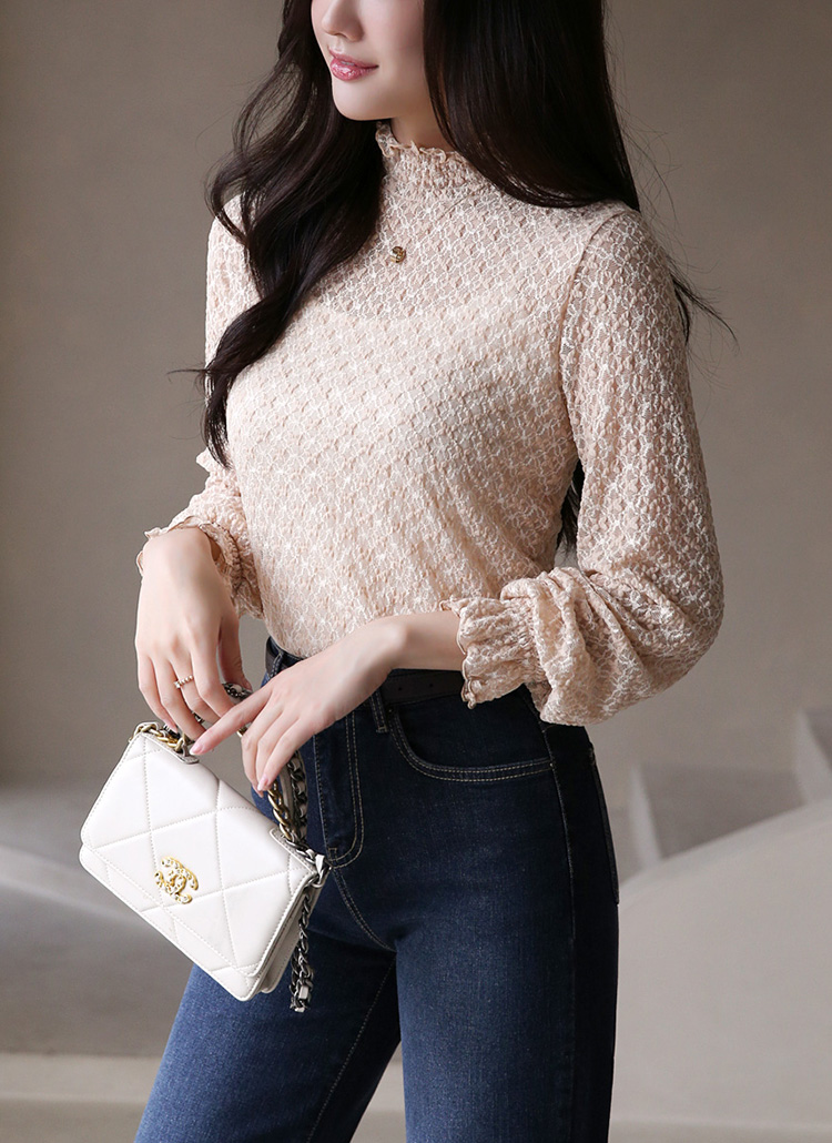 시스루 레이스 소재로 여성스러운 분위기를 연출해주며
