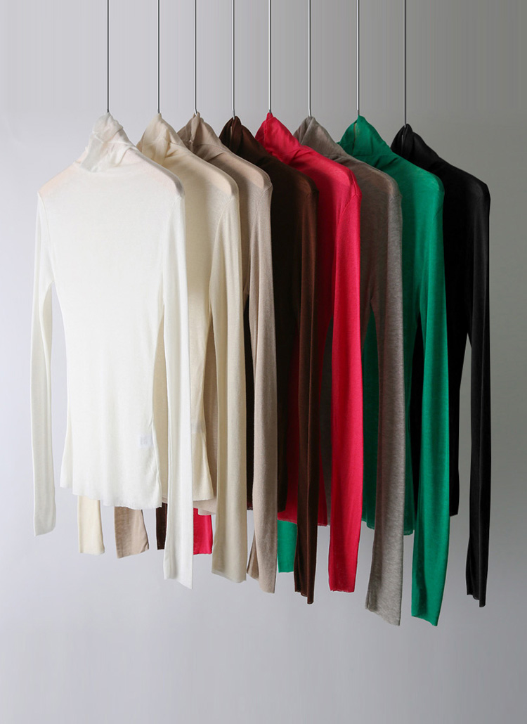 [Soft, stretchy, and lightweight—this slim-fit turtleneck hugs the body comfortably, perfect for layering through all cool seasons.]
