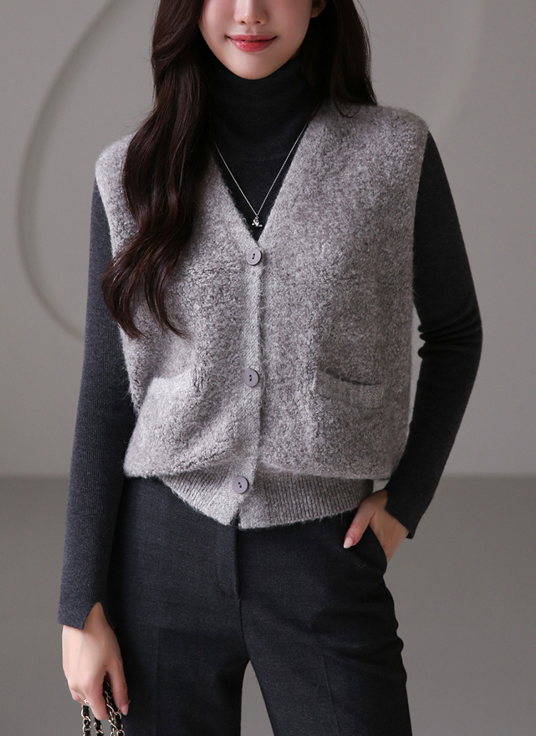 가디건 형식의 베스트는 오픈해서 입기 좋으며,