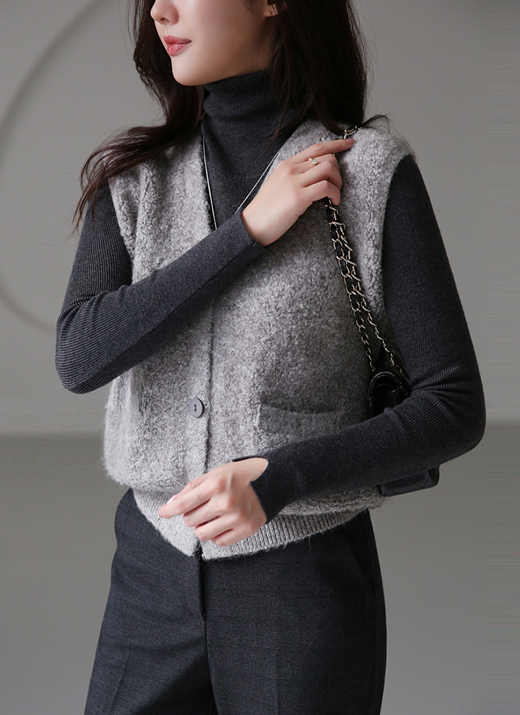 Boucle Knit Vest & Ribbed Knit Turtleneck SET