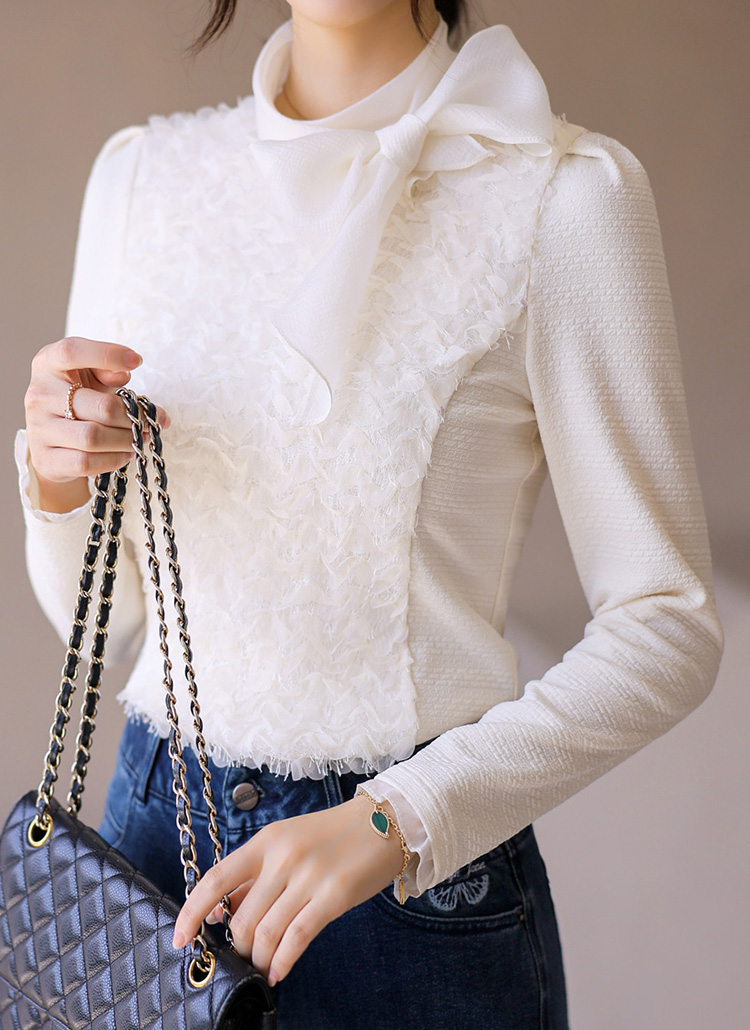 [LouisAngel] Petal Grace Bow-Neck Blouse