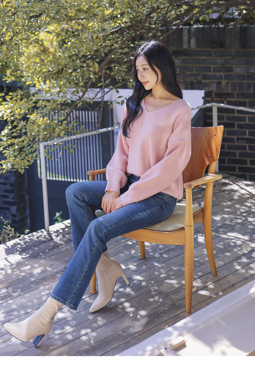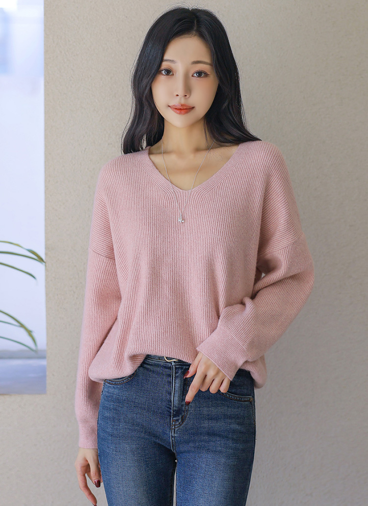 [The Onme] (10 Colors) Soft Ribbed V-Neck Knit Top