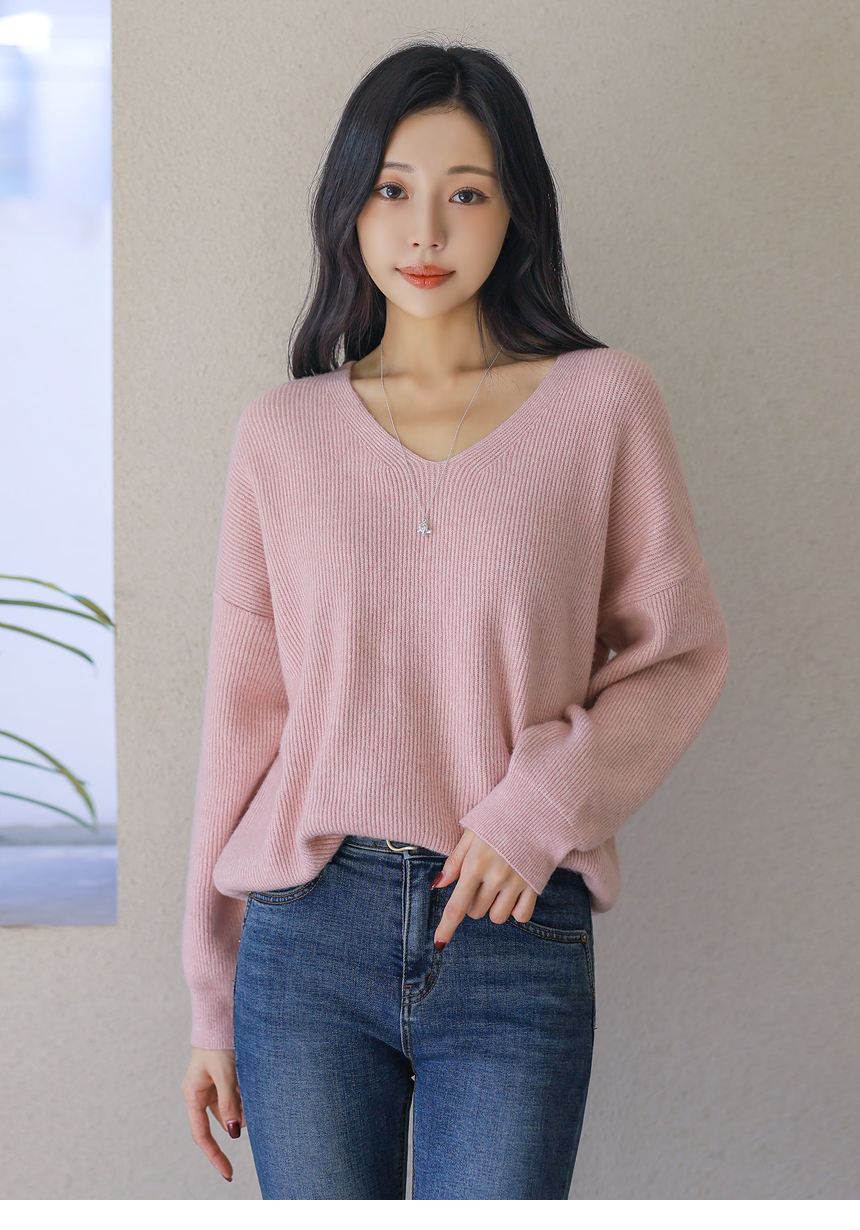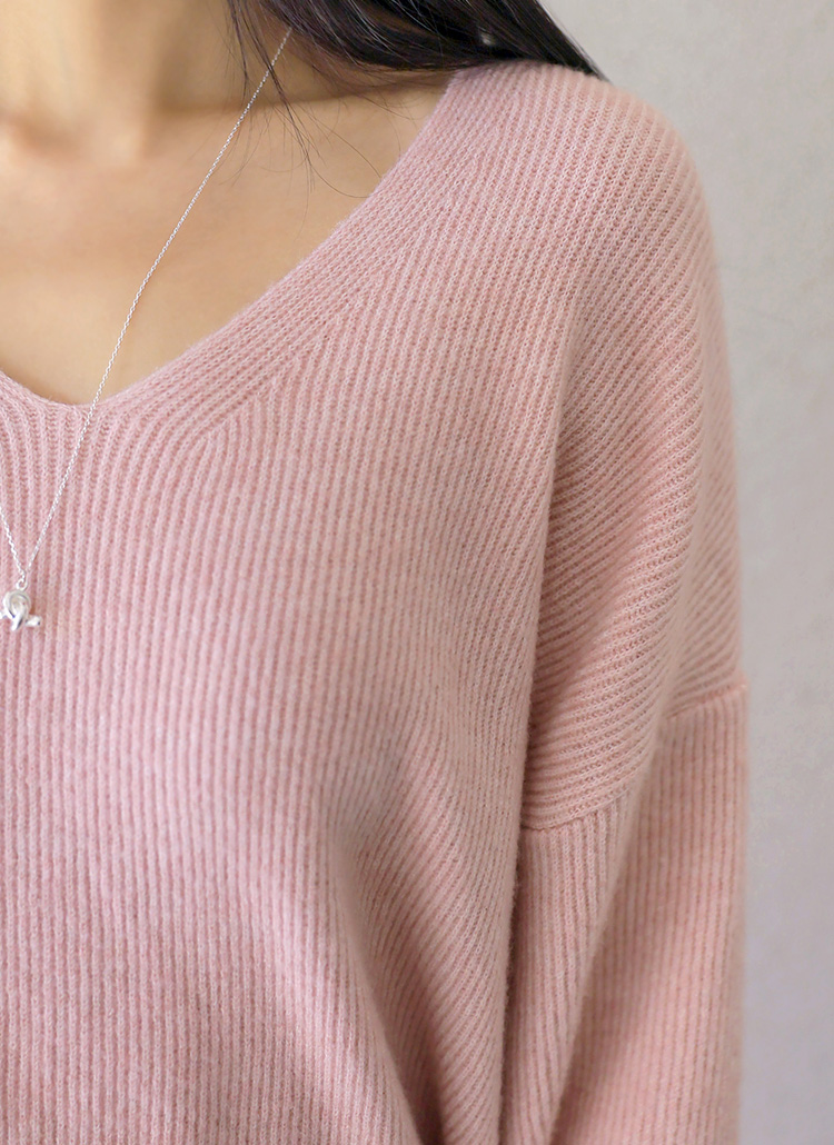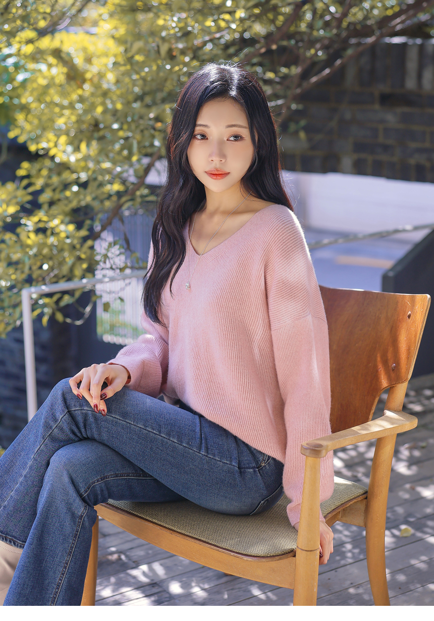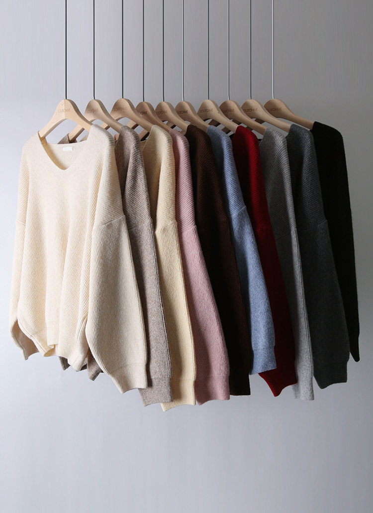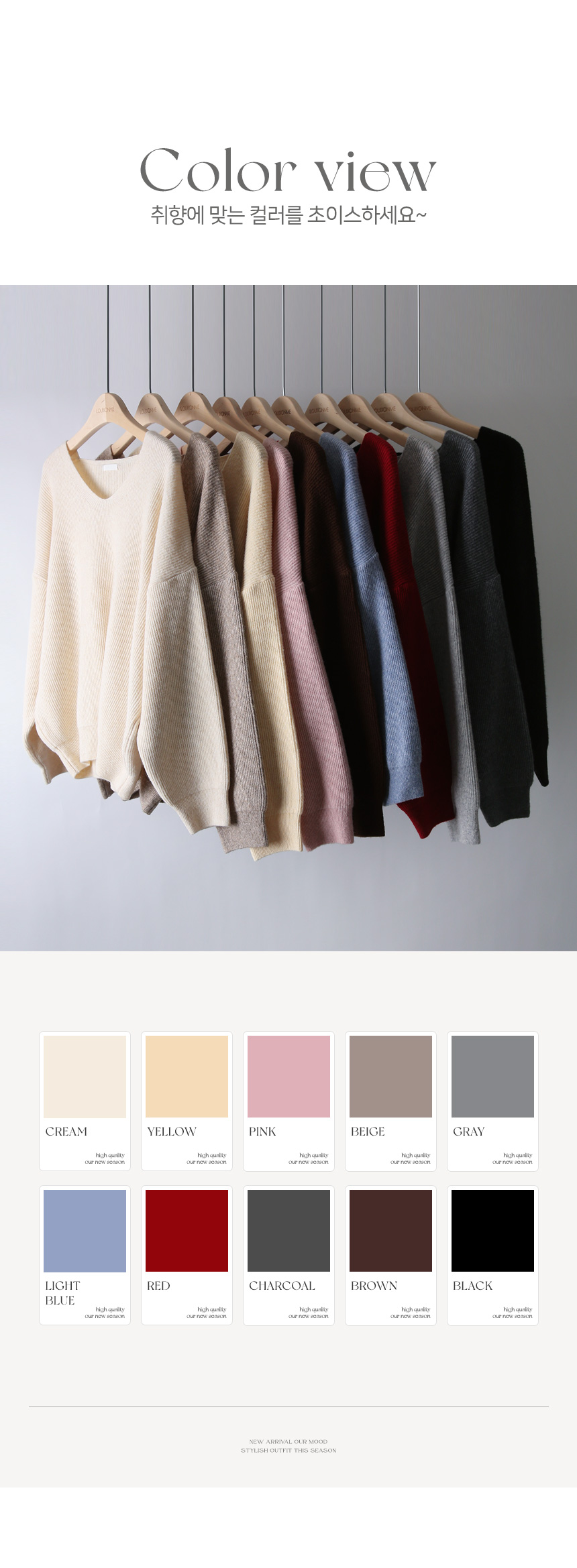 폭닥하고 소프트한 울 혼방 소재의 루즈핏 브이넥 니트에요 :)