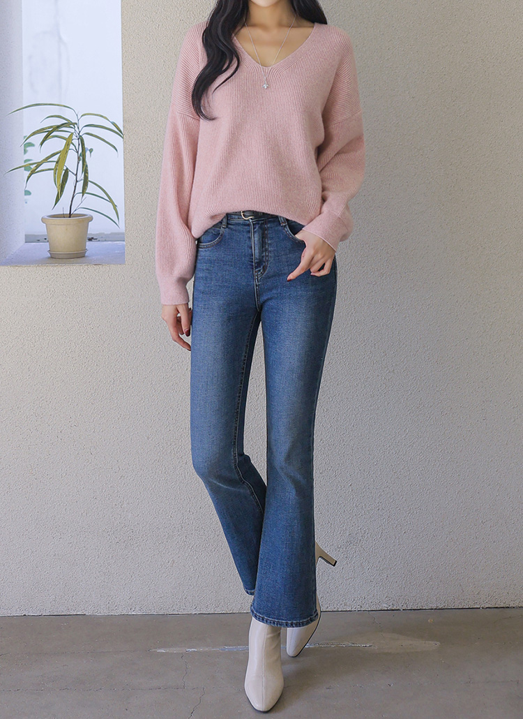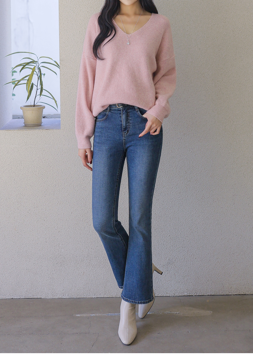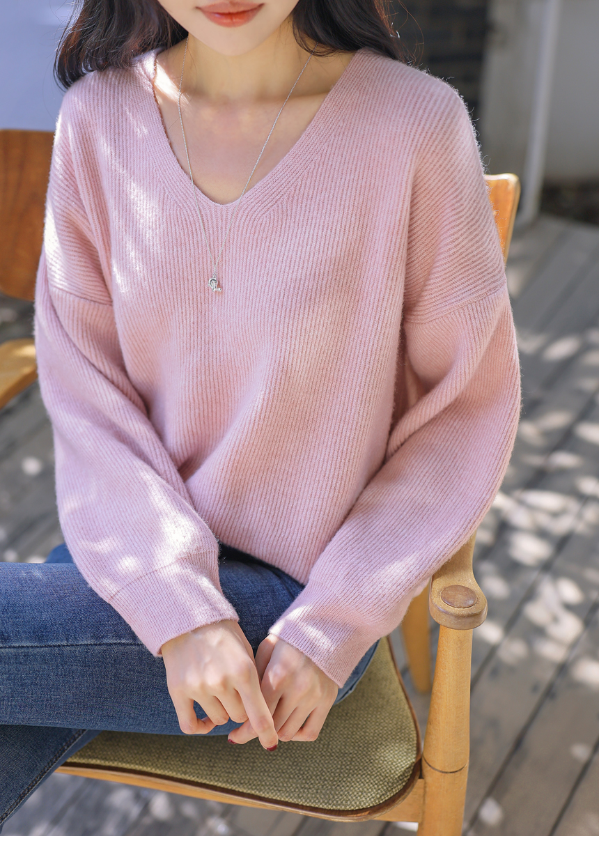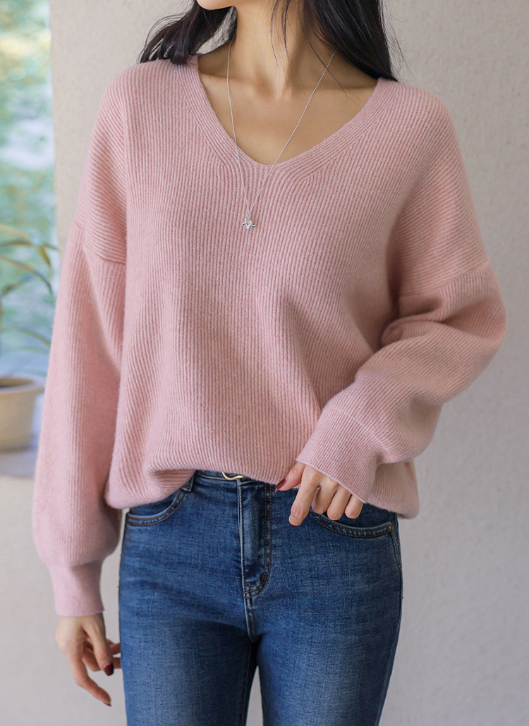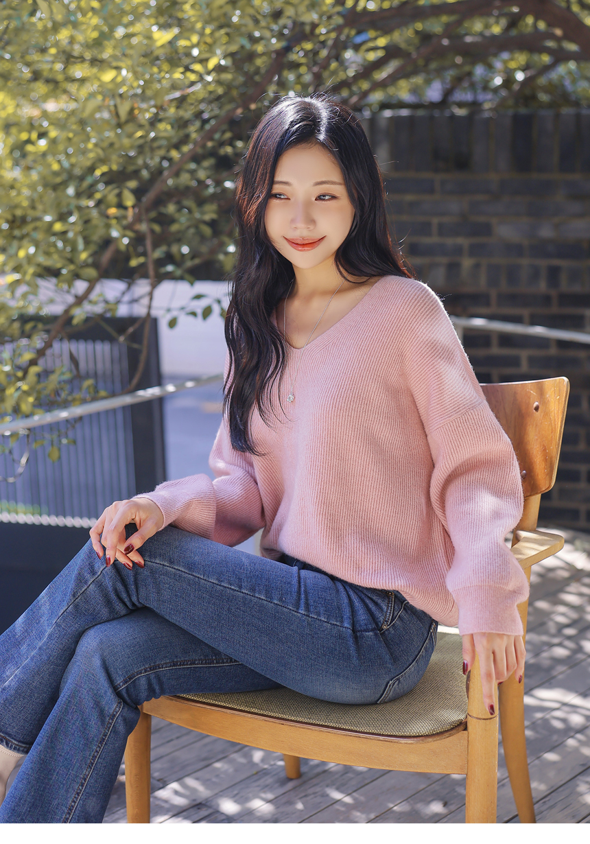 폭닥하고 소프트한 울 혼방 소재의 루즈핏 브이넥 니트에요 :)