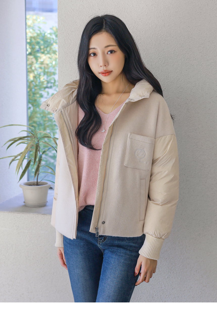 • A stylish mix of soft wool and light down, featuring a cozy hood and knit cuffs that lock in warmth for effortless winter comfort.