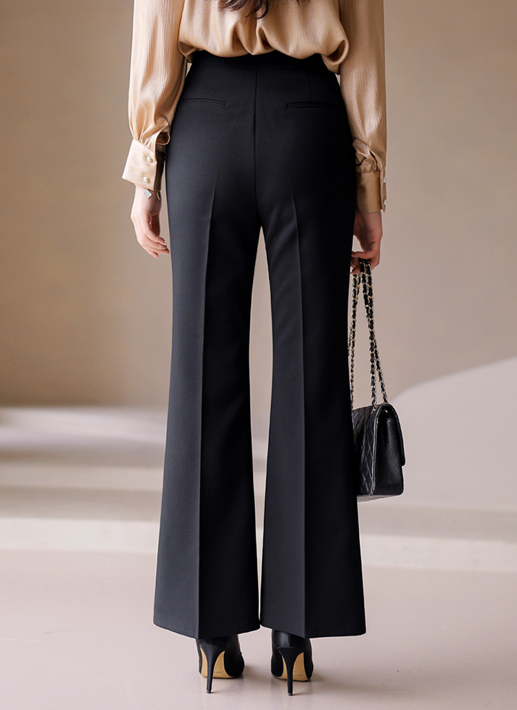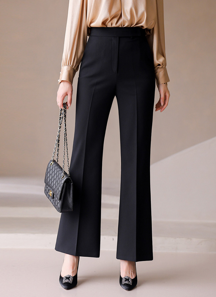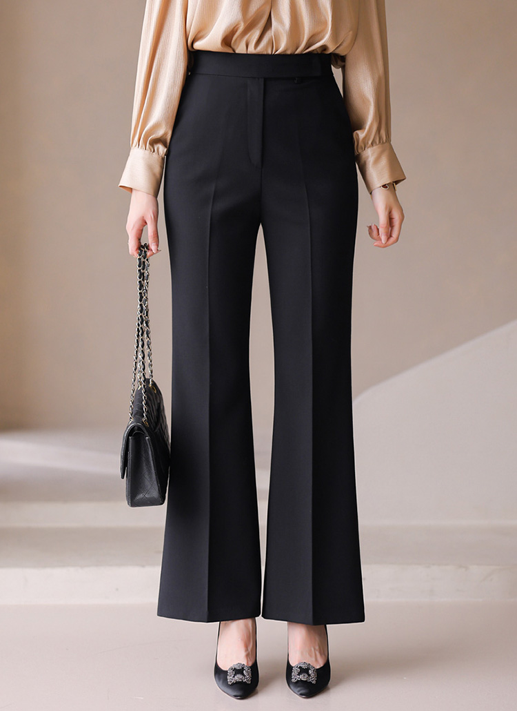 [With a flattering bootcut silhouette and wrap-style waistband, these slacks offer effortless sophistication and comfort.]