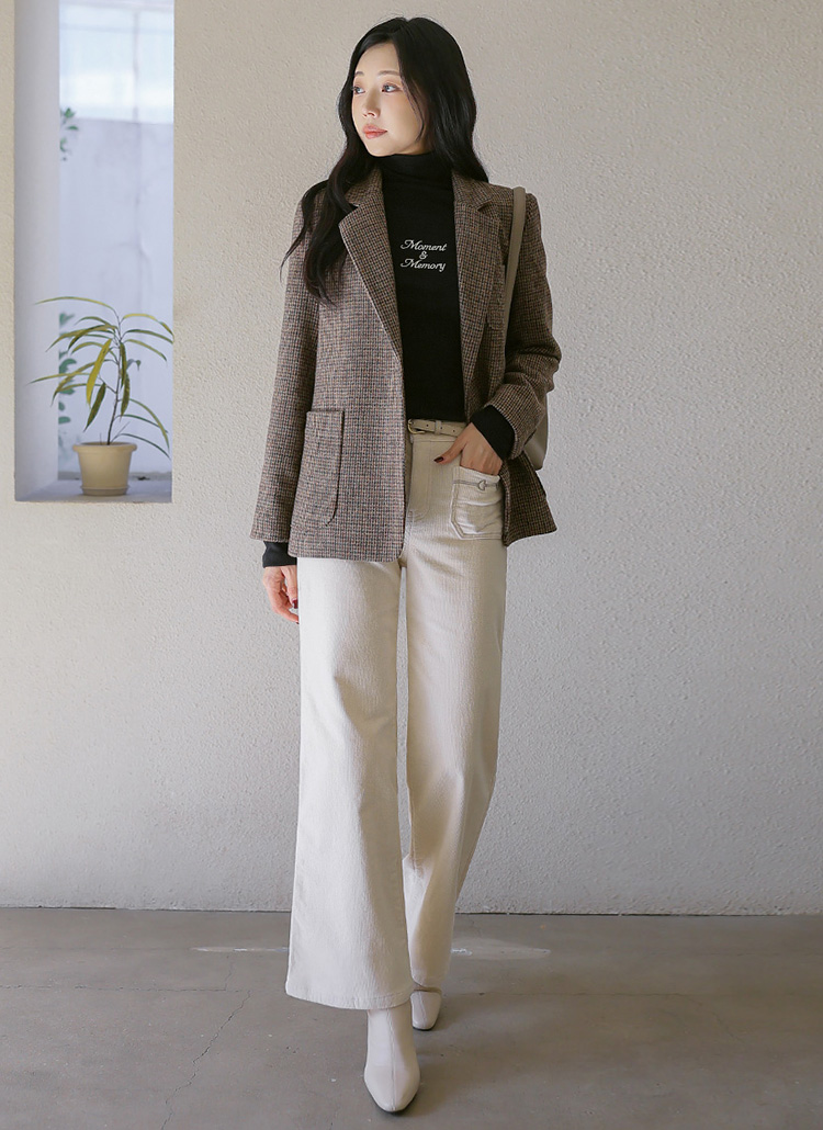 클래식한 글렌체크 패턴에 울 블렌딩으로