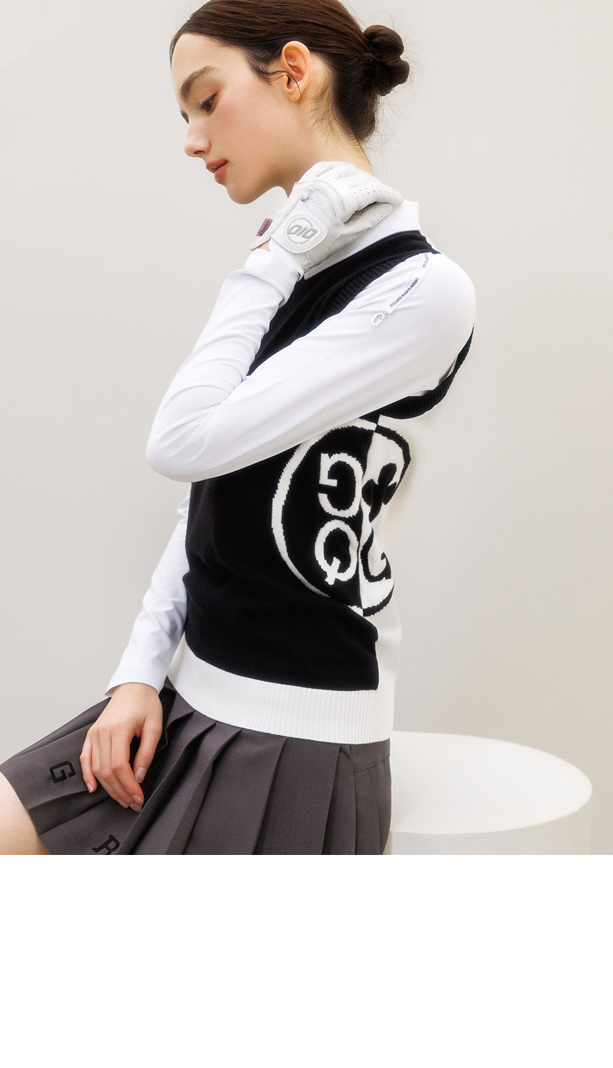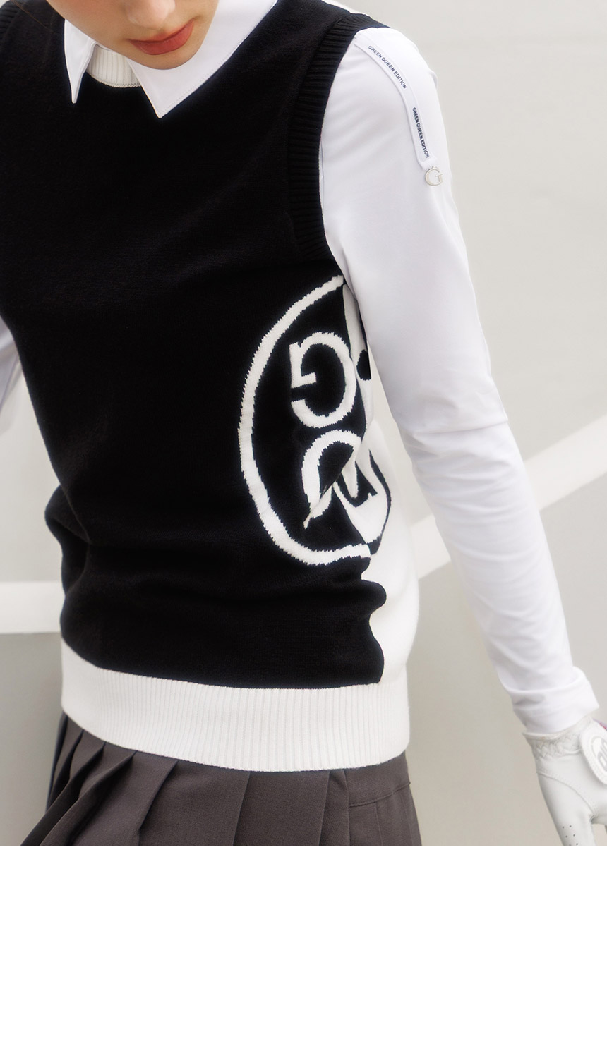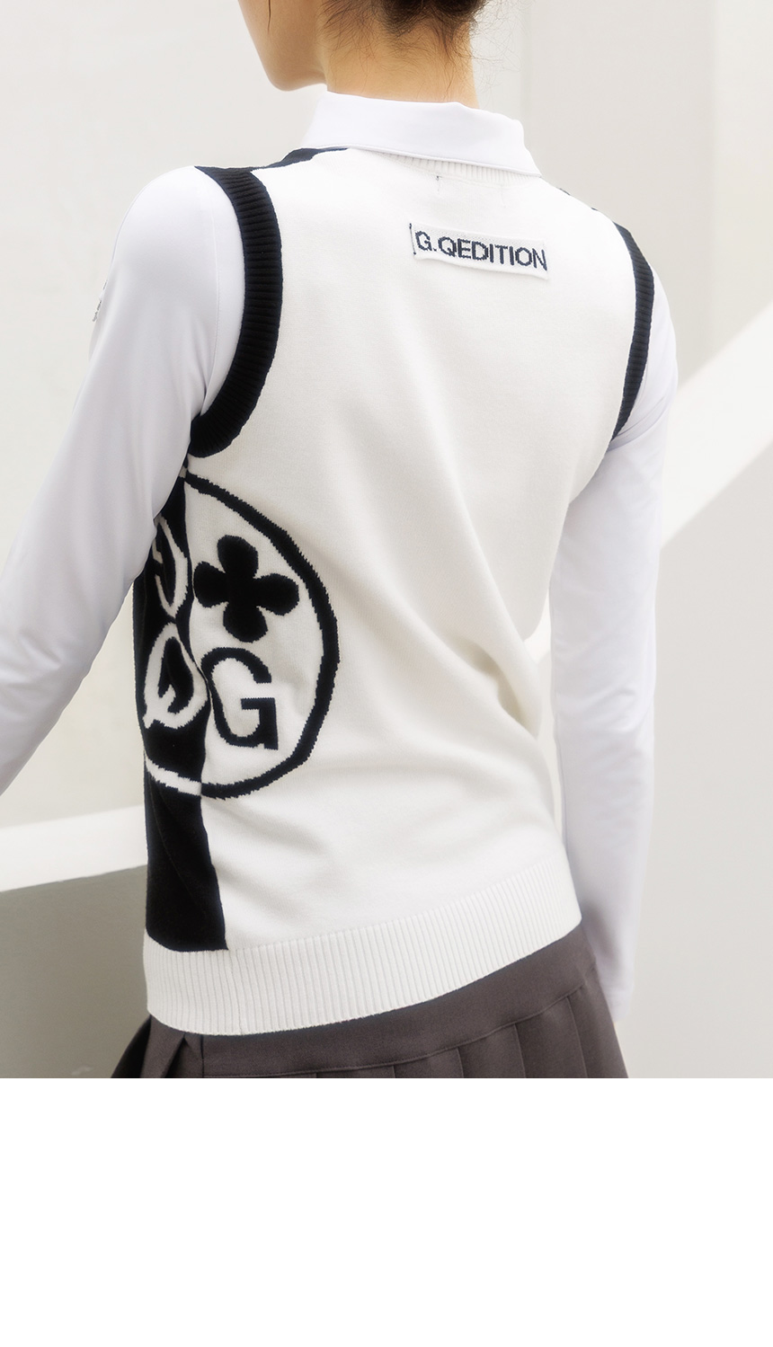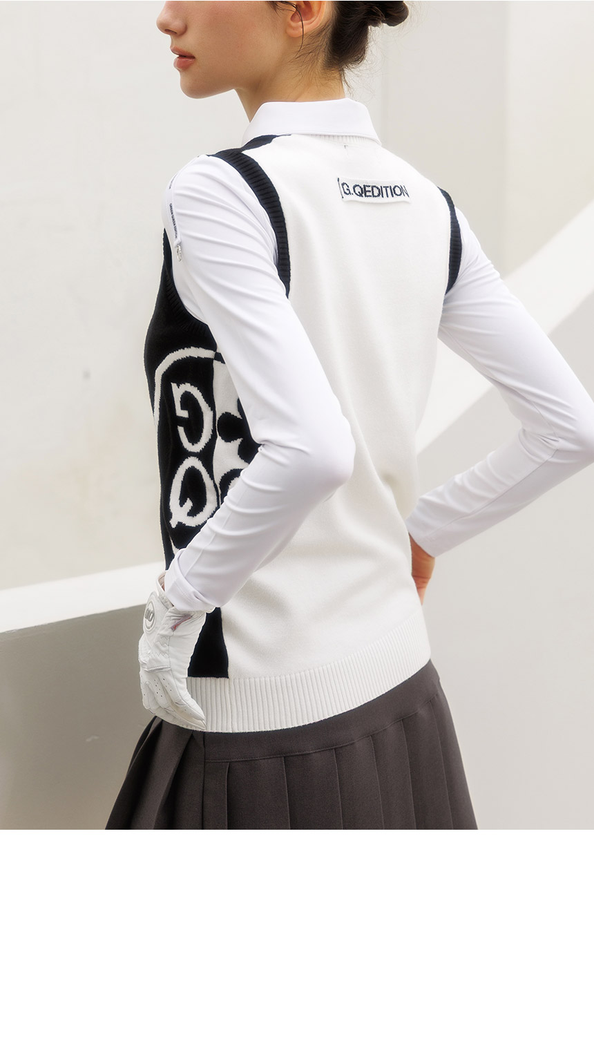 [Featuring a color-block front and back with ribbed neckline and hem, this knit vest brings dynamic balance and comfort.]