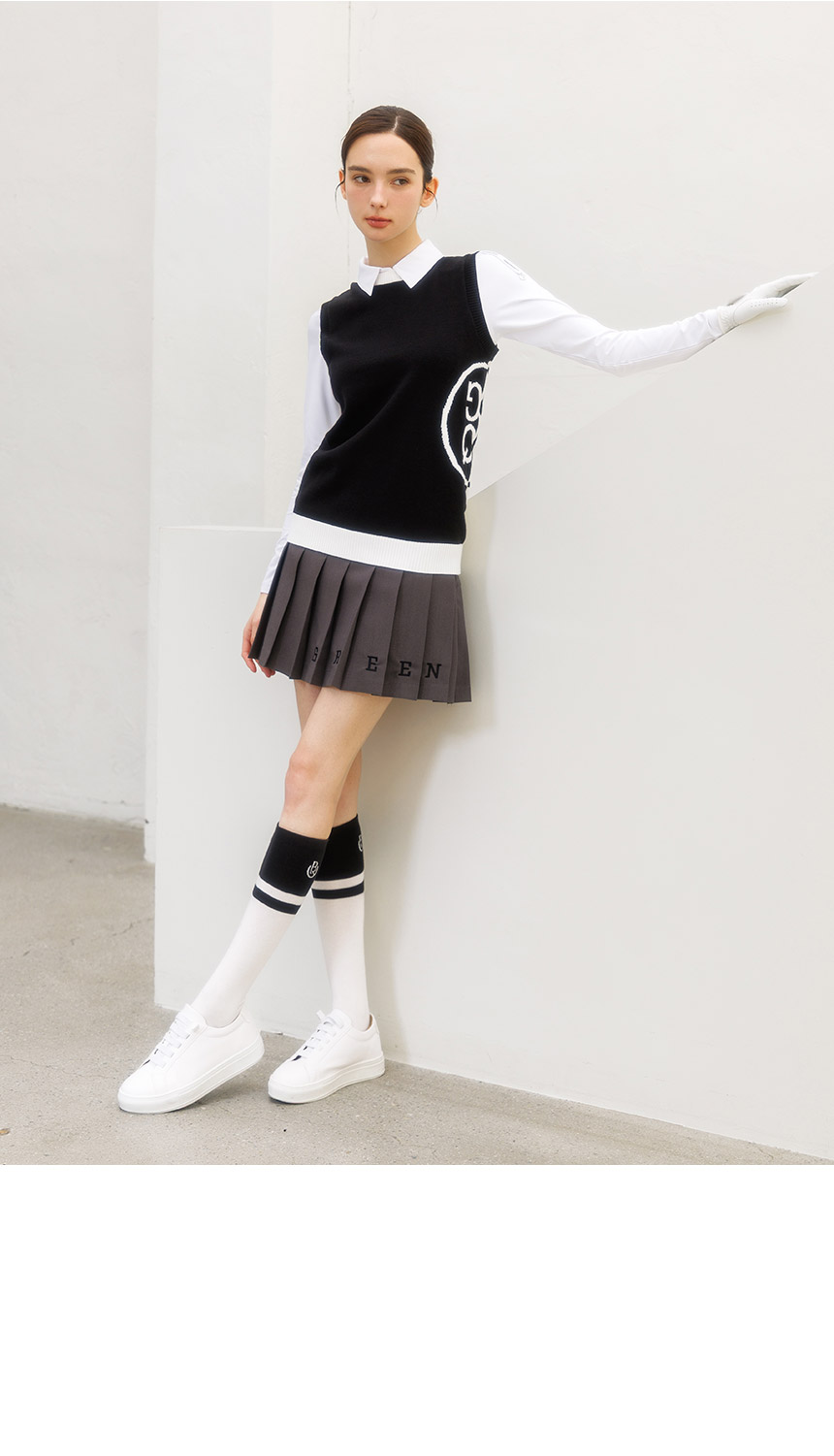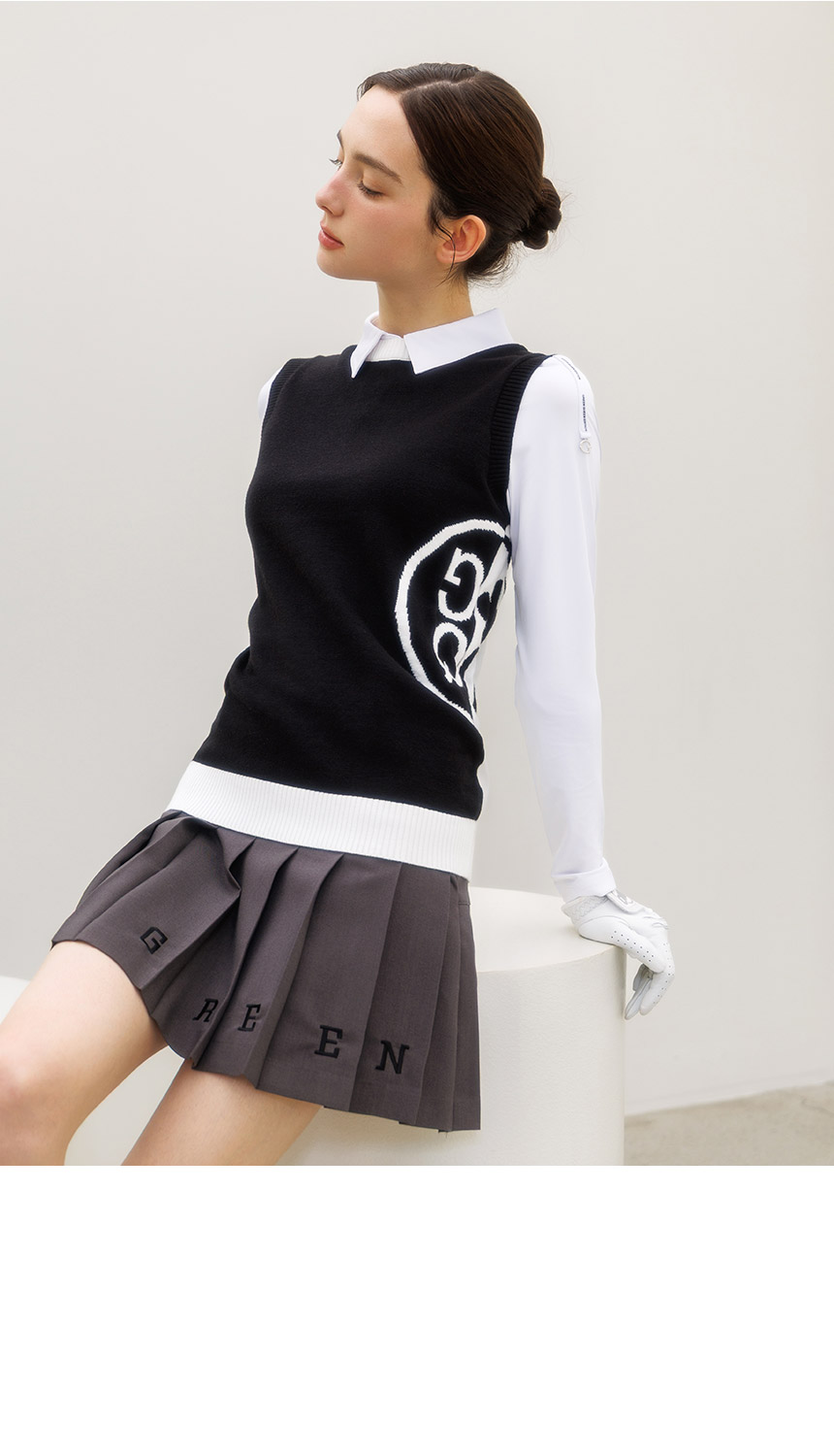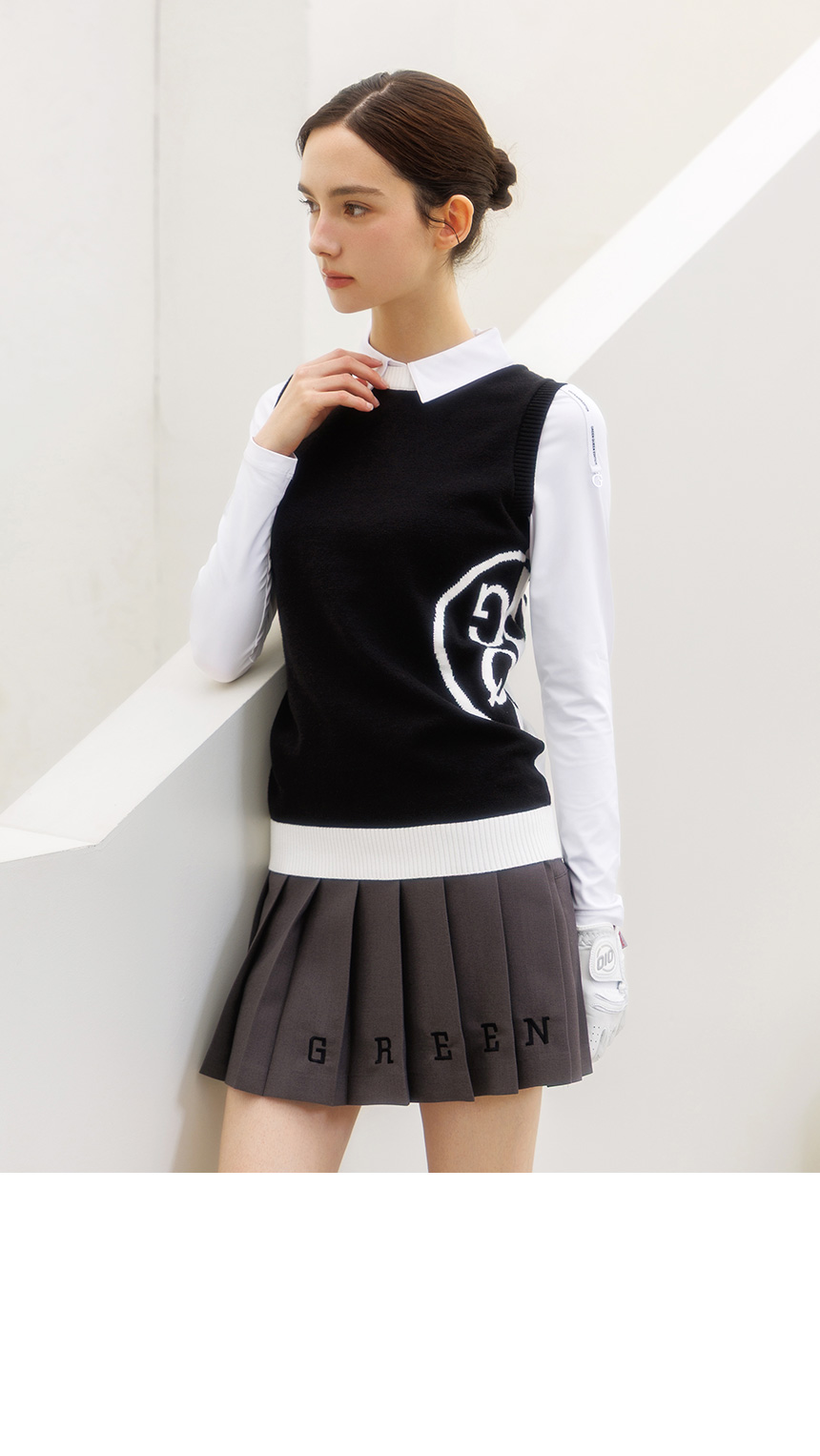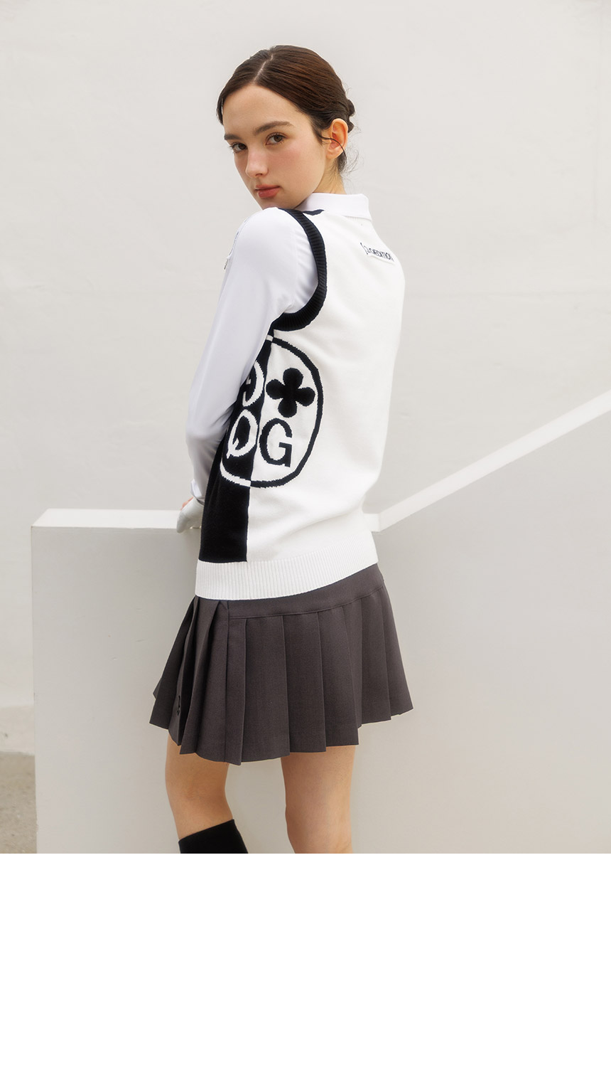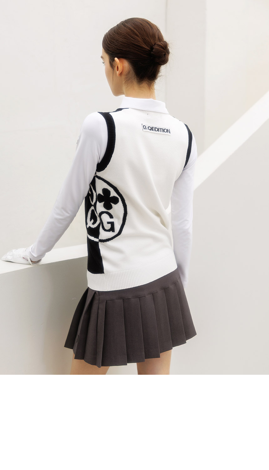 [Featuring a color-block front and back with ribbed neckline and hem, this knit vest brings dynamic balance and comfort.]