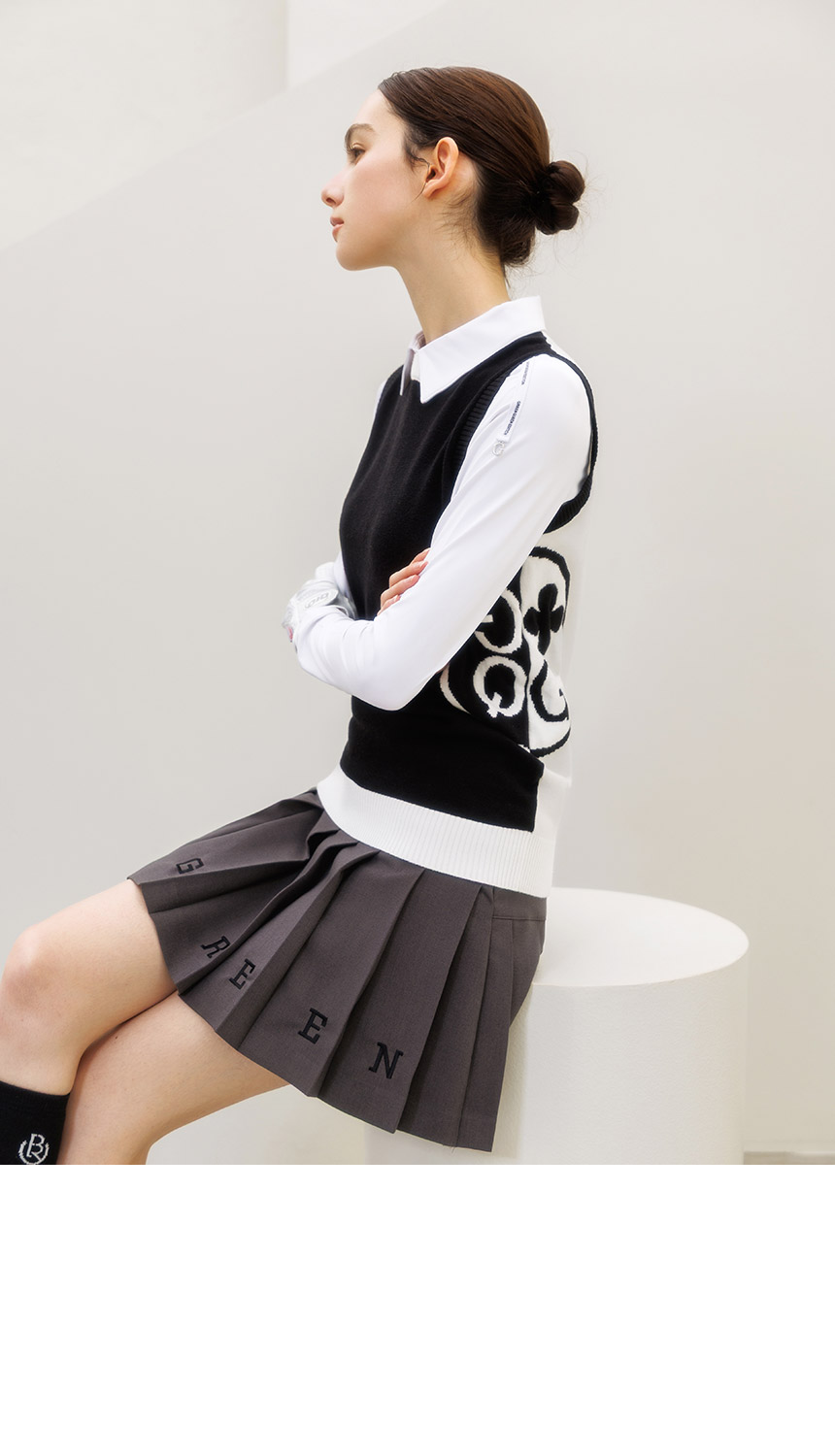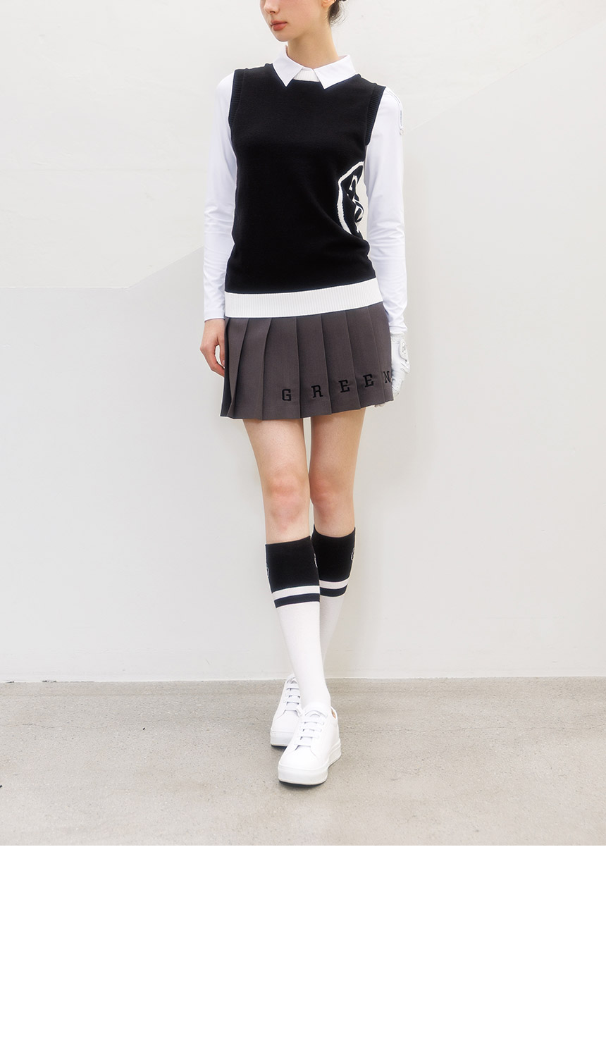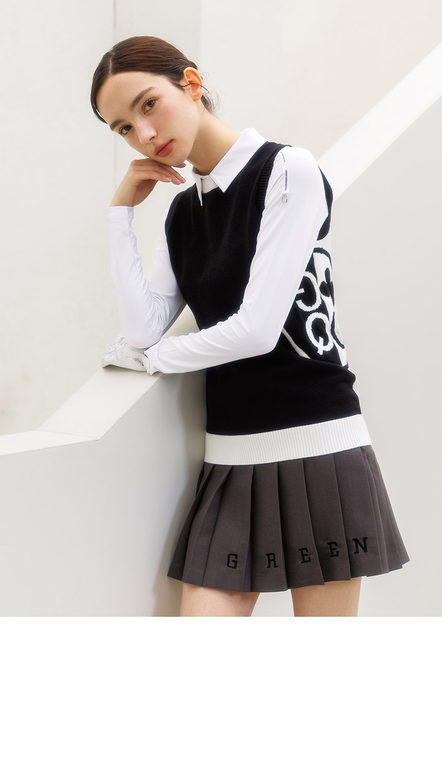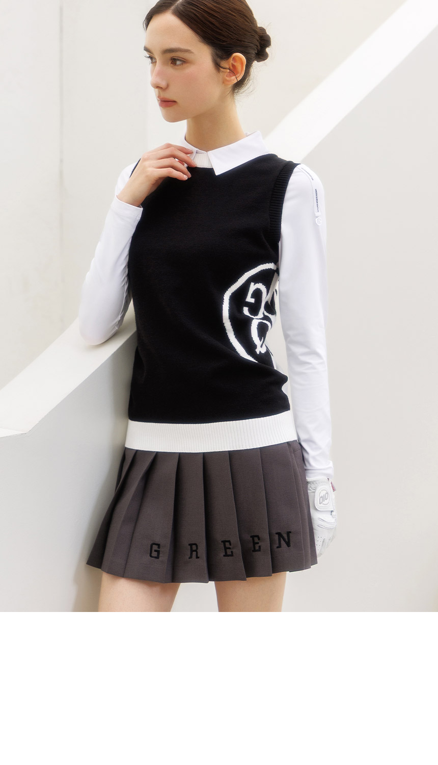[Featuring a color-block front and back with ribbed neckline and hem, this knit vest brings dynamic balance and comfort.]