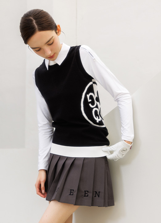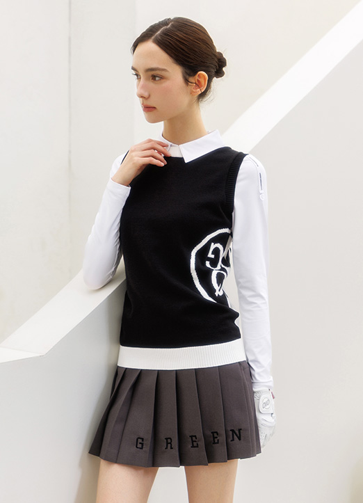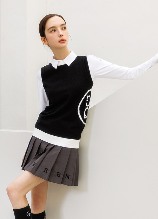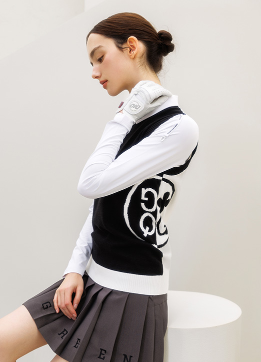 [Featuring a color-block front and back with ribbed neckline and hem, this knit vest brings dynamic balance and comfort.]
