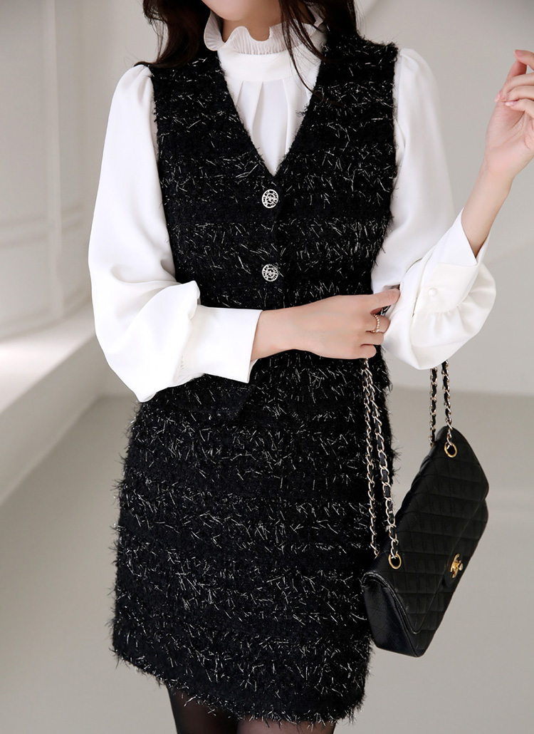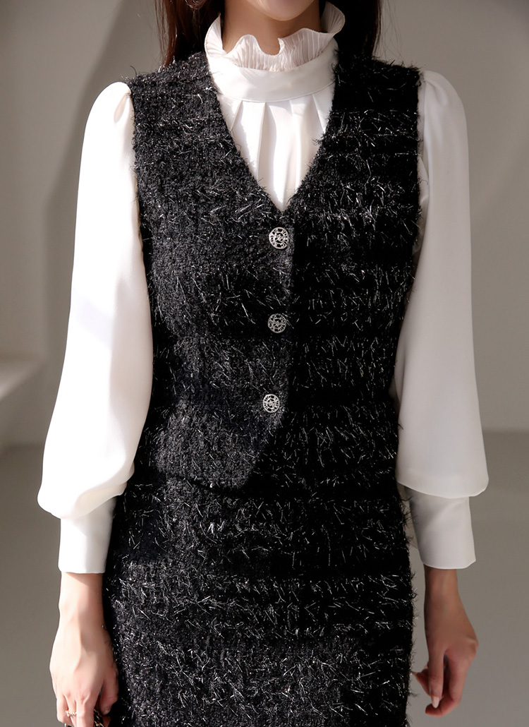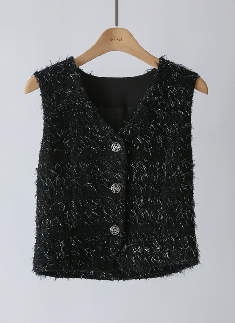 [A soft wool-blend vest with metallic threads that catch the light, adding a festive touch to elegant year-end looks.]