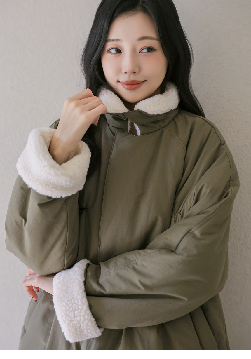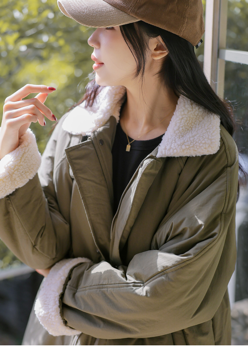 패딩 점퍼 원단에 양털 퍼 안감으로