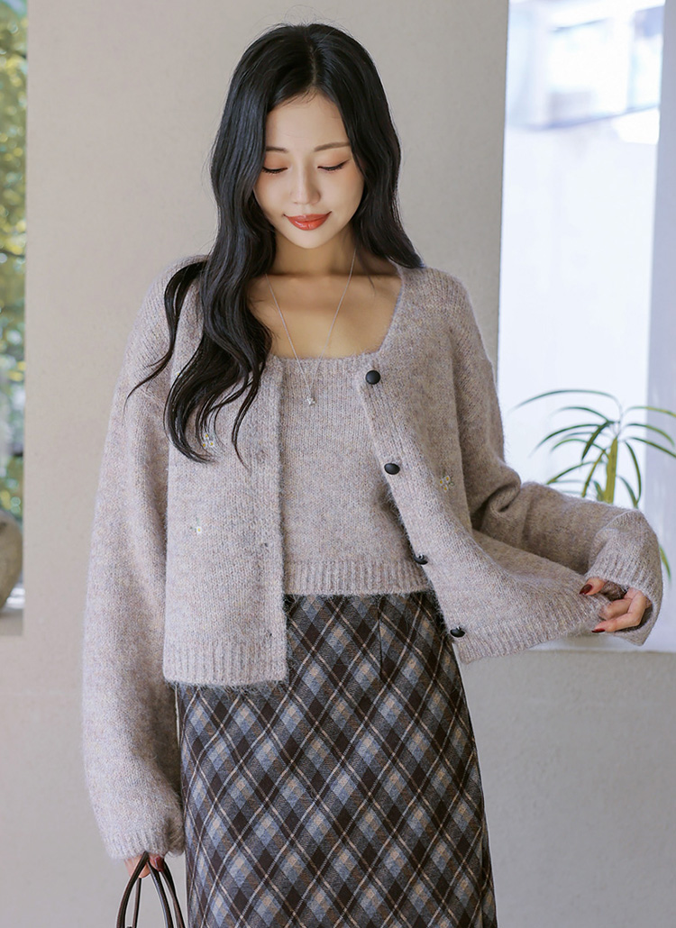 [The Onme] Cozy Bloom Knit Cami & Cardigan SET