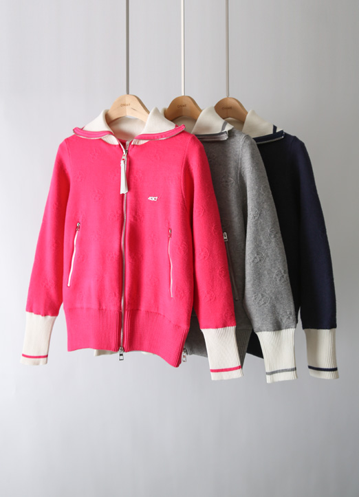 [QoG] Contrast Edge Jacquard Zip Knit Cardigan