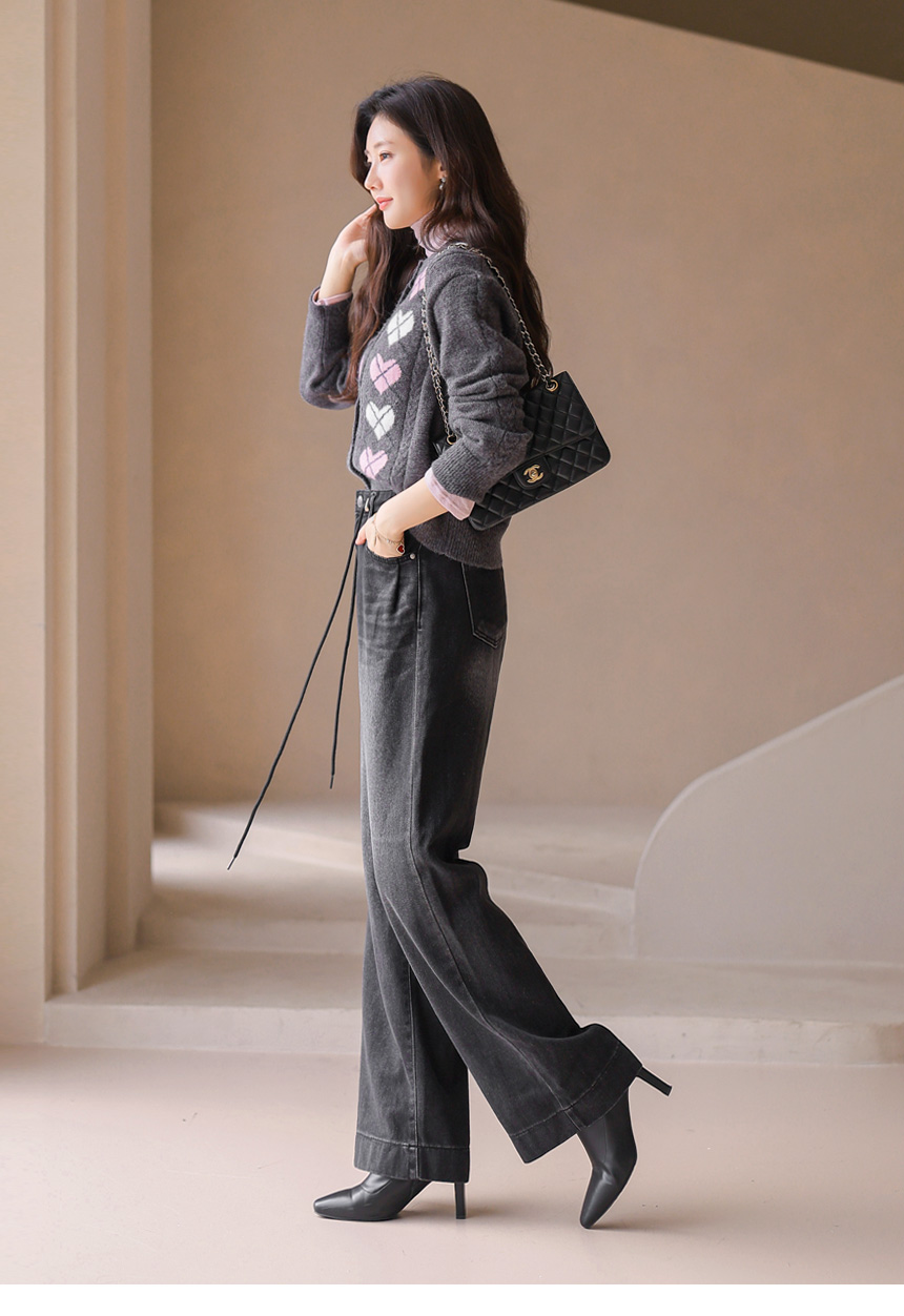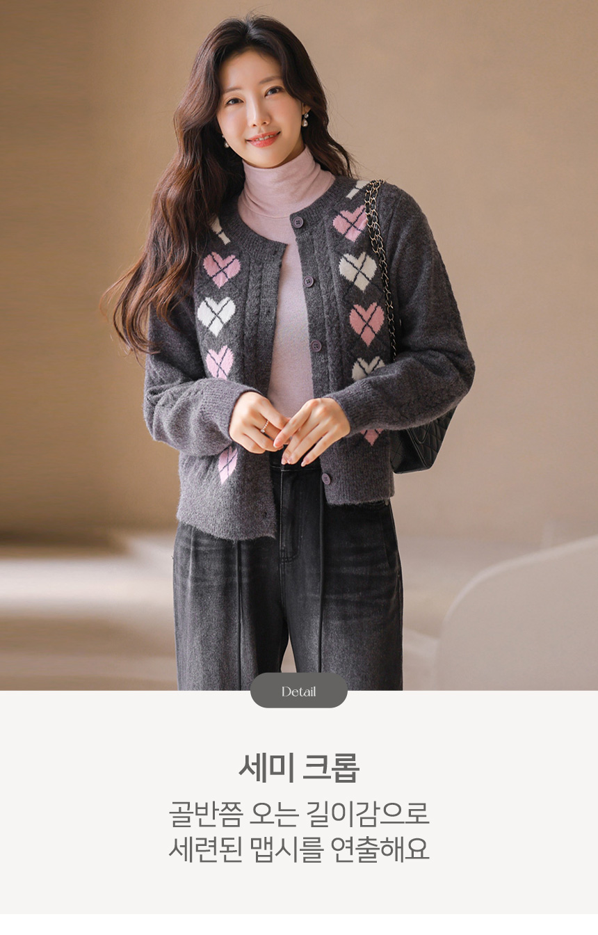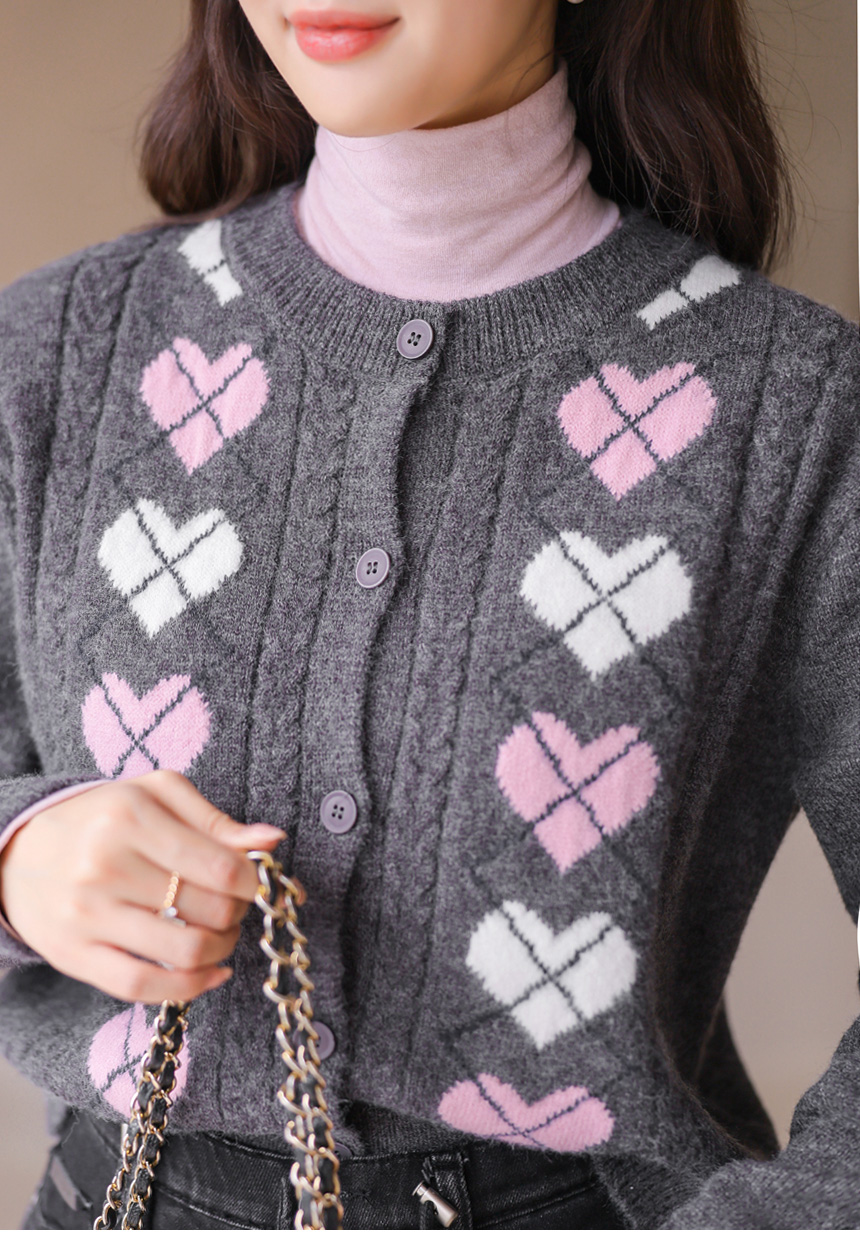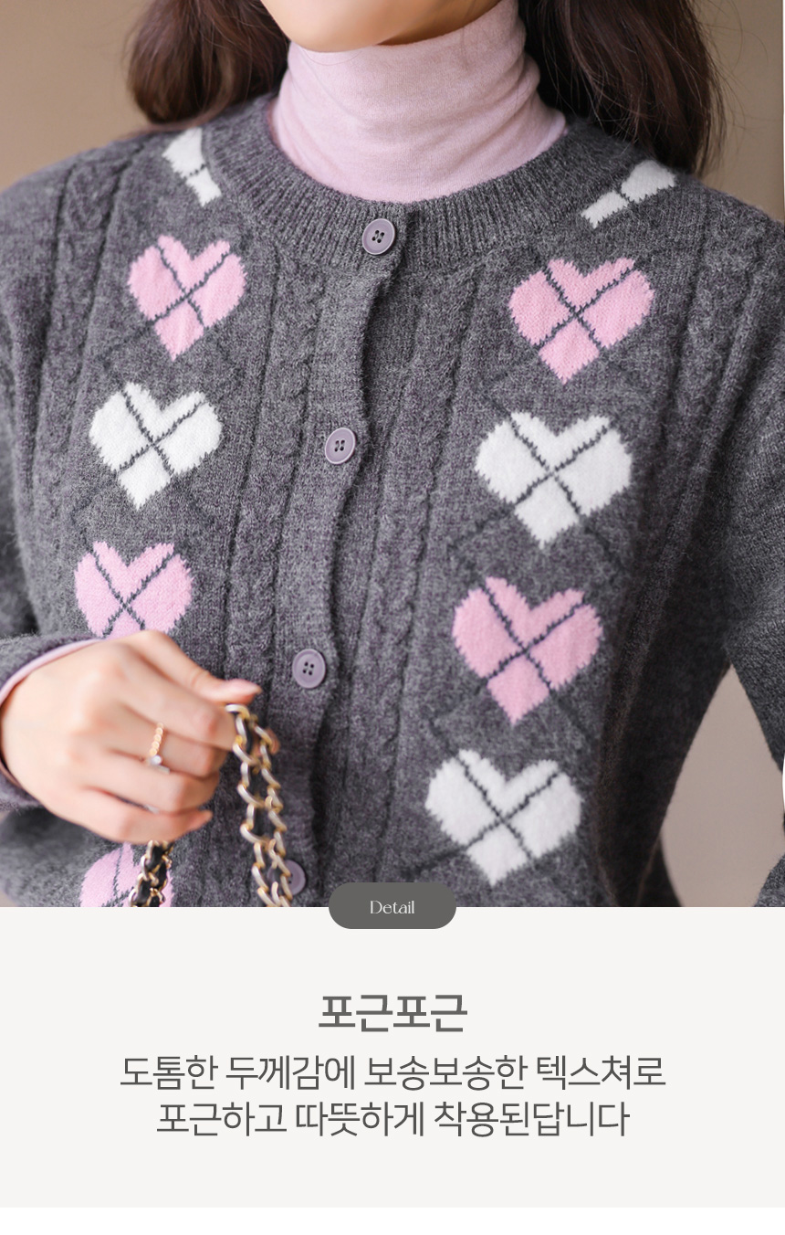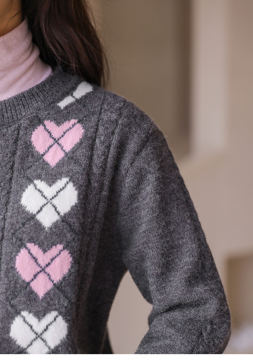 [Charming cardigan blending cable knit detail and heart argyle pattern, perfect for adding warmth and personality to any look.]