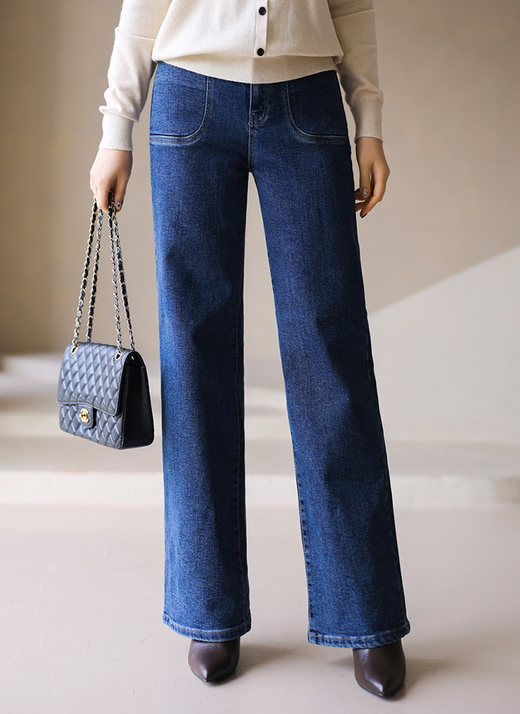 깔끔한 일자 세미 와이드 핏으로 데일리하게 즐기기 좋은 데님 팬츠에요 :)