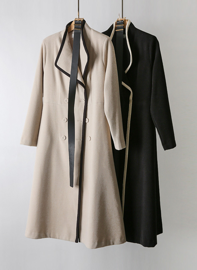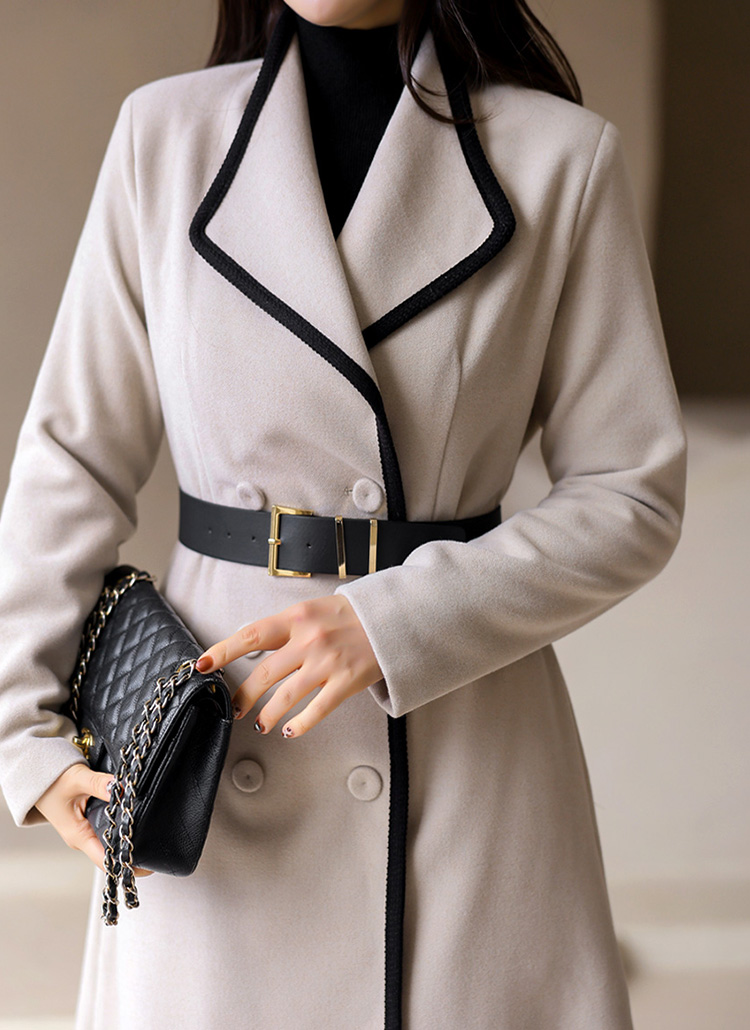 Double-Breasted Contrast Edge Coat w/ Belt