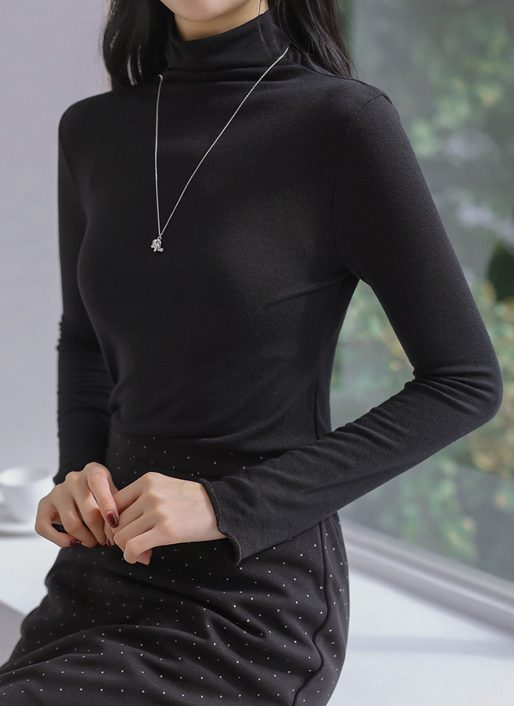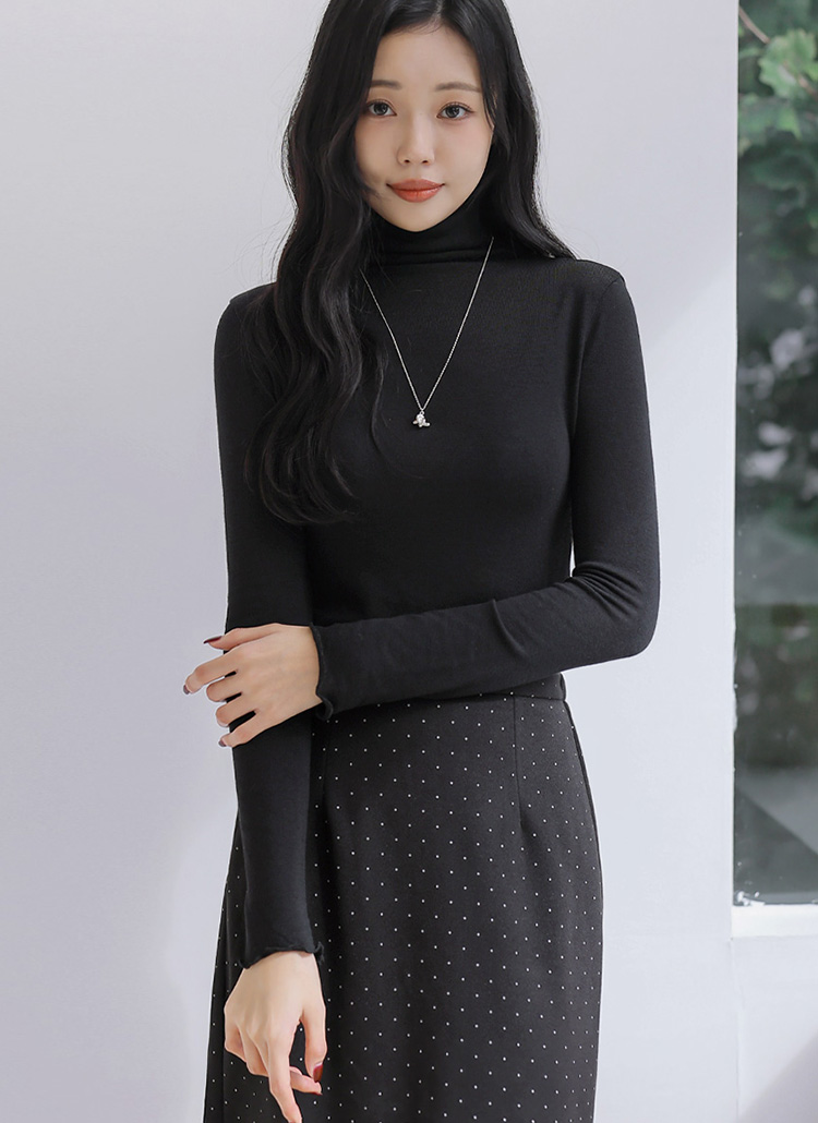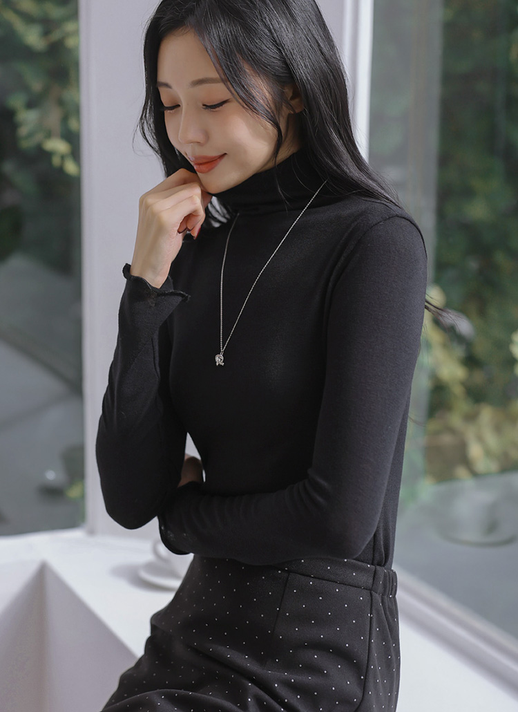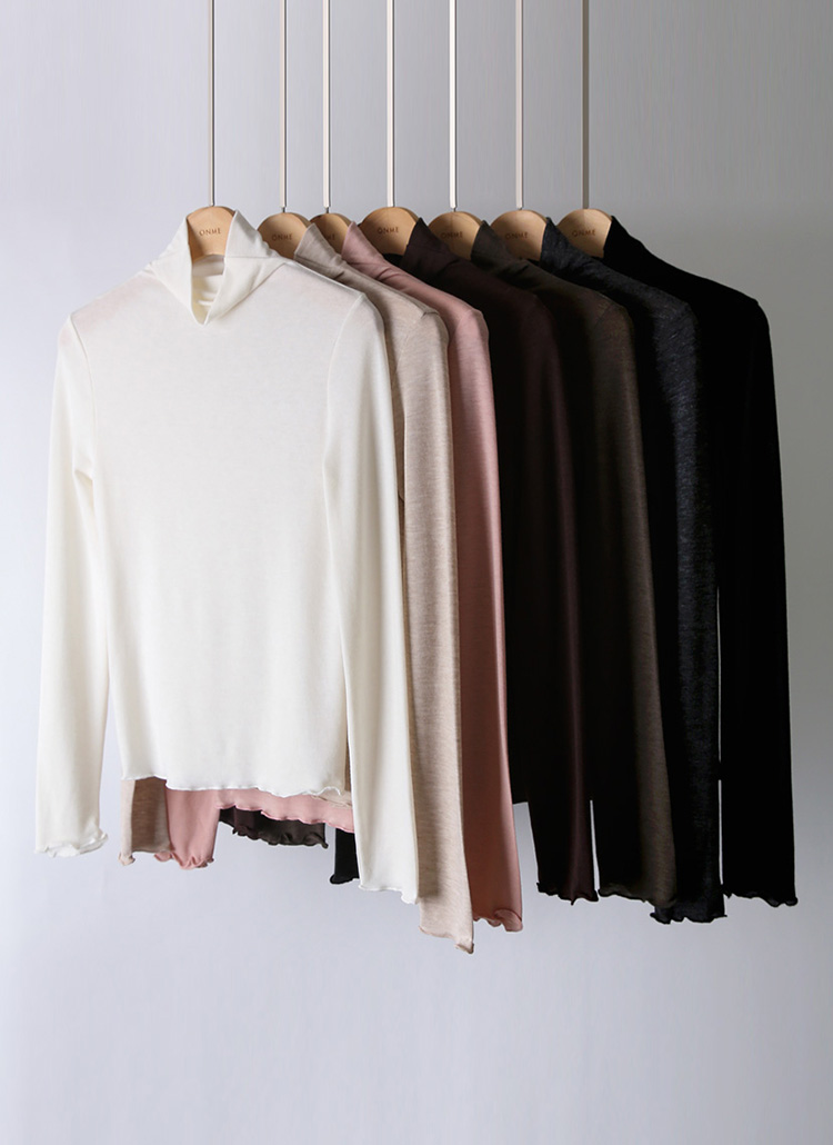 [The Onme] (7 Colors) Soft Ruffle Edge High Neck Tee