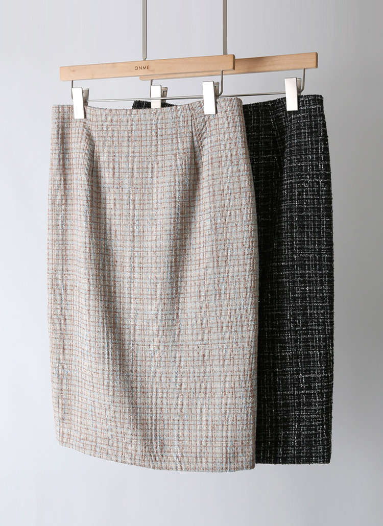 [A graceful H-line skirt featuring a delicate shimmer and a slimming silhouette, perfect for sophisticated office looks or formal seasonal styling.]