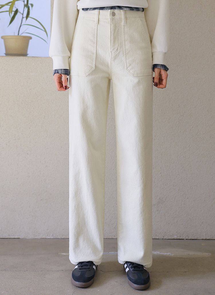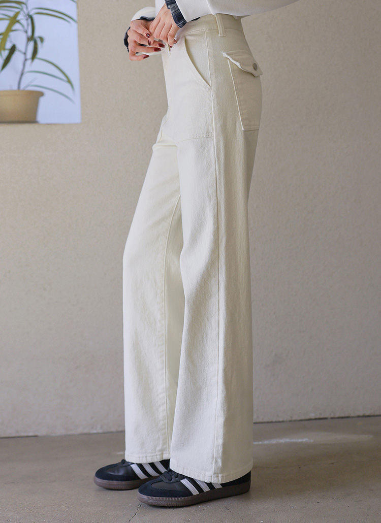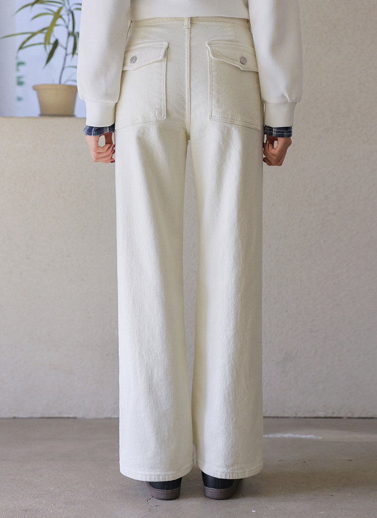 [The Onme] Warm Touch Wide Cotton Flap-Pocket Pants