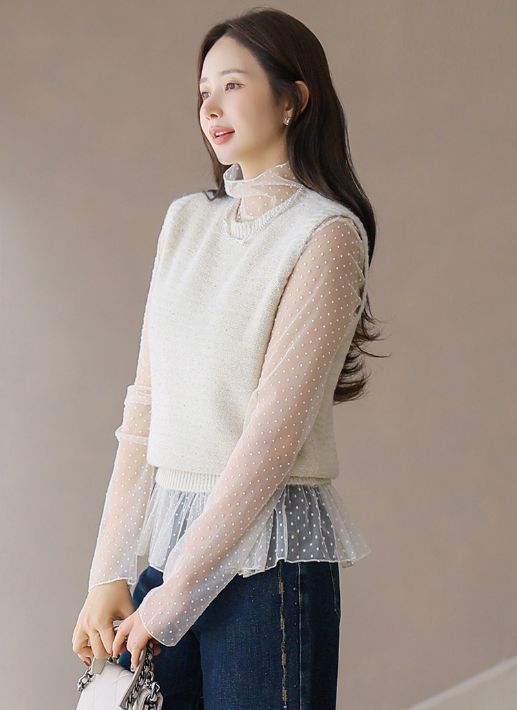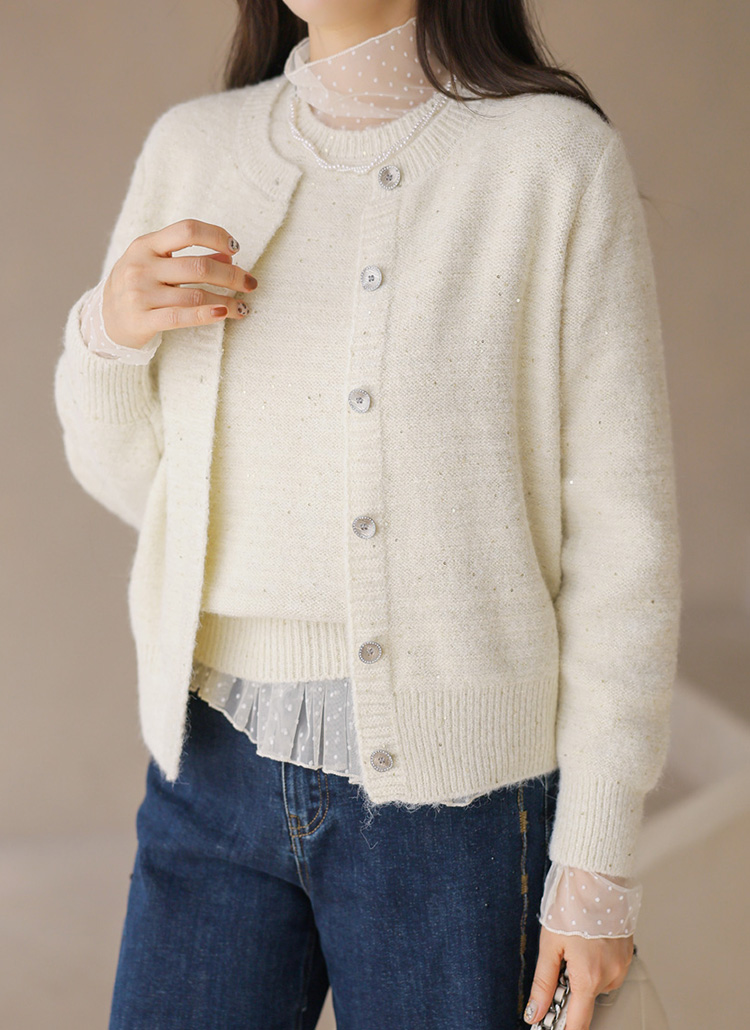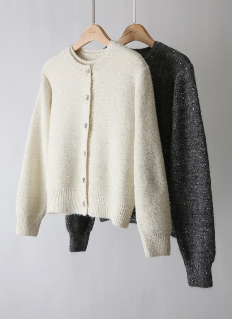 [A cozy vest and cardigan duo crafted in a warm blended knit with subtle sparkle accents, brightening your complexion while offering effortless everyday styling.]
