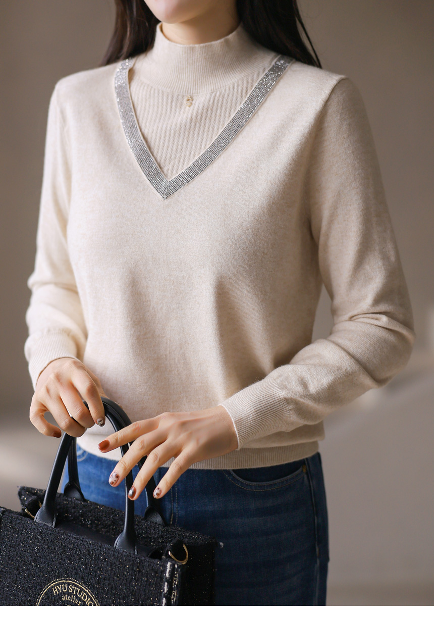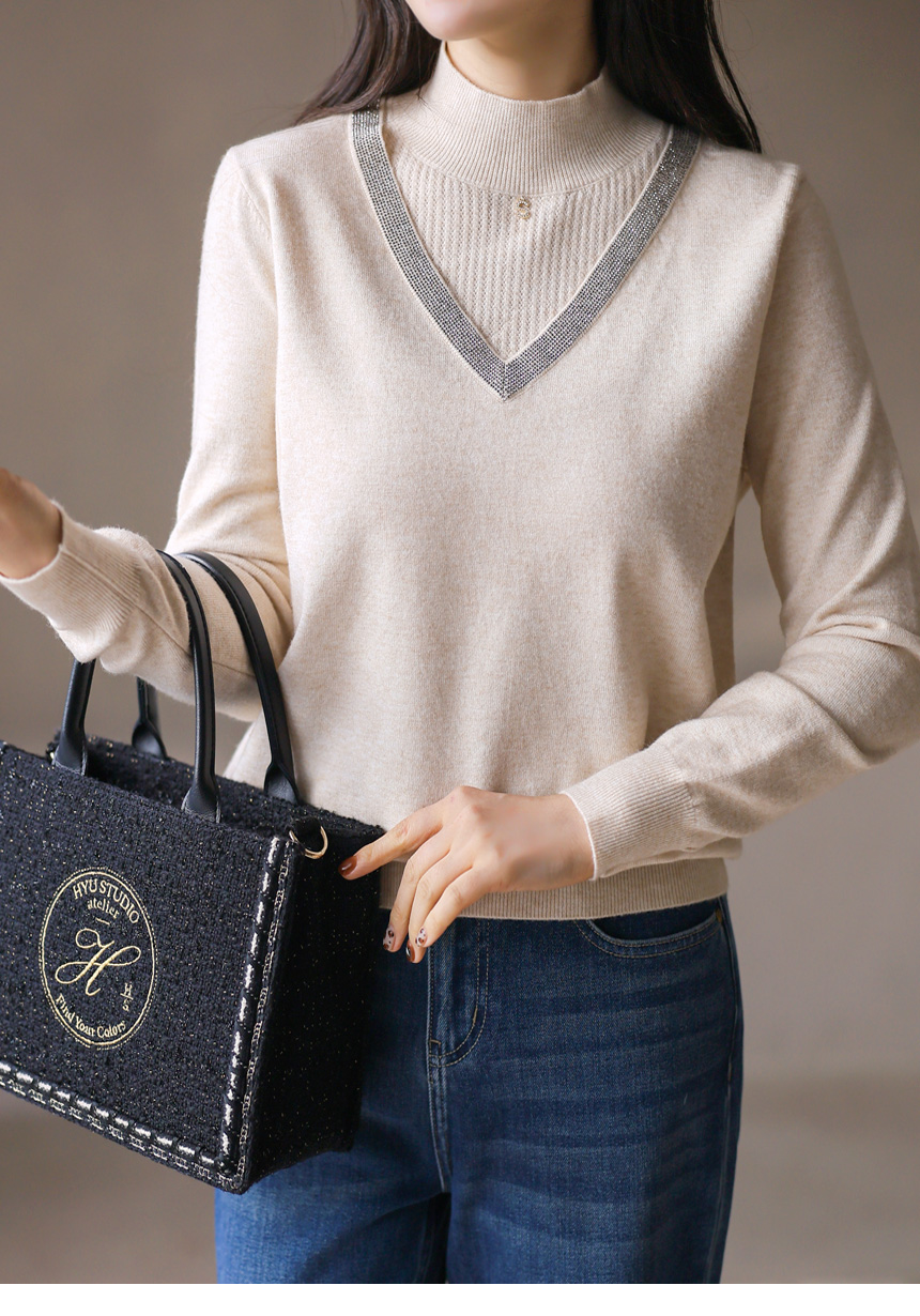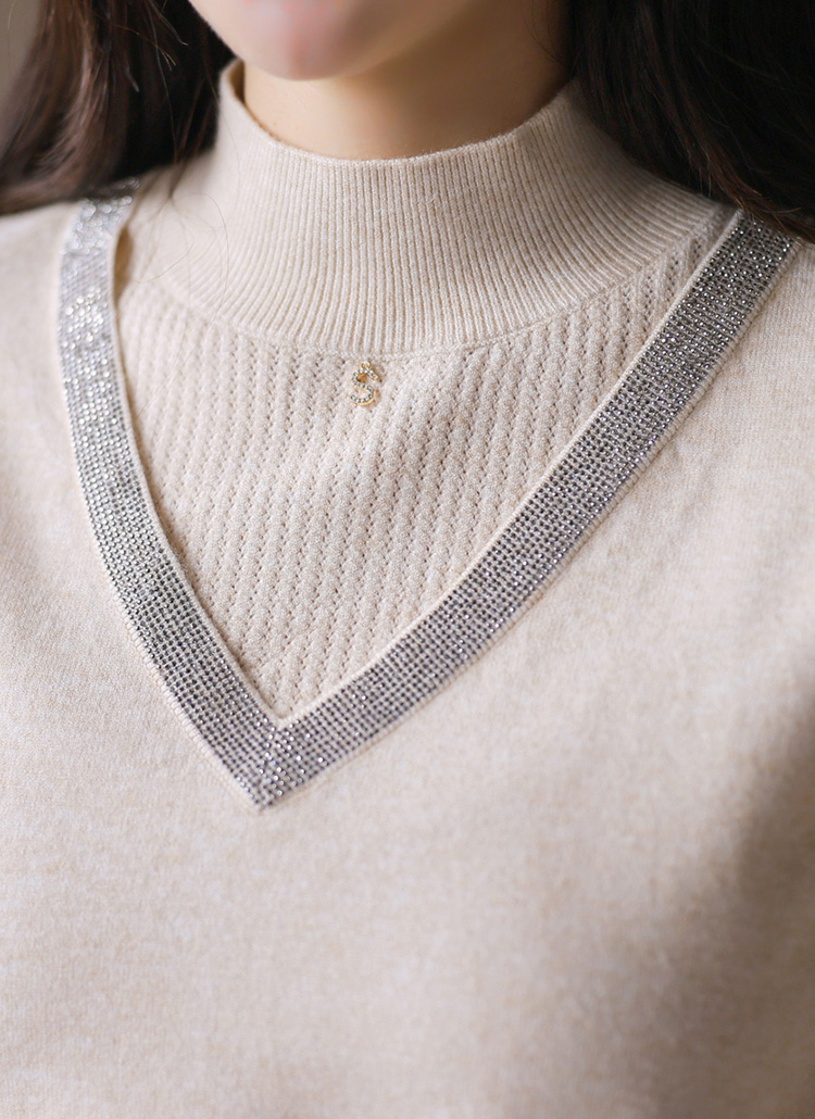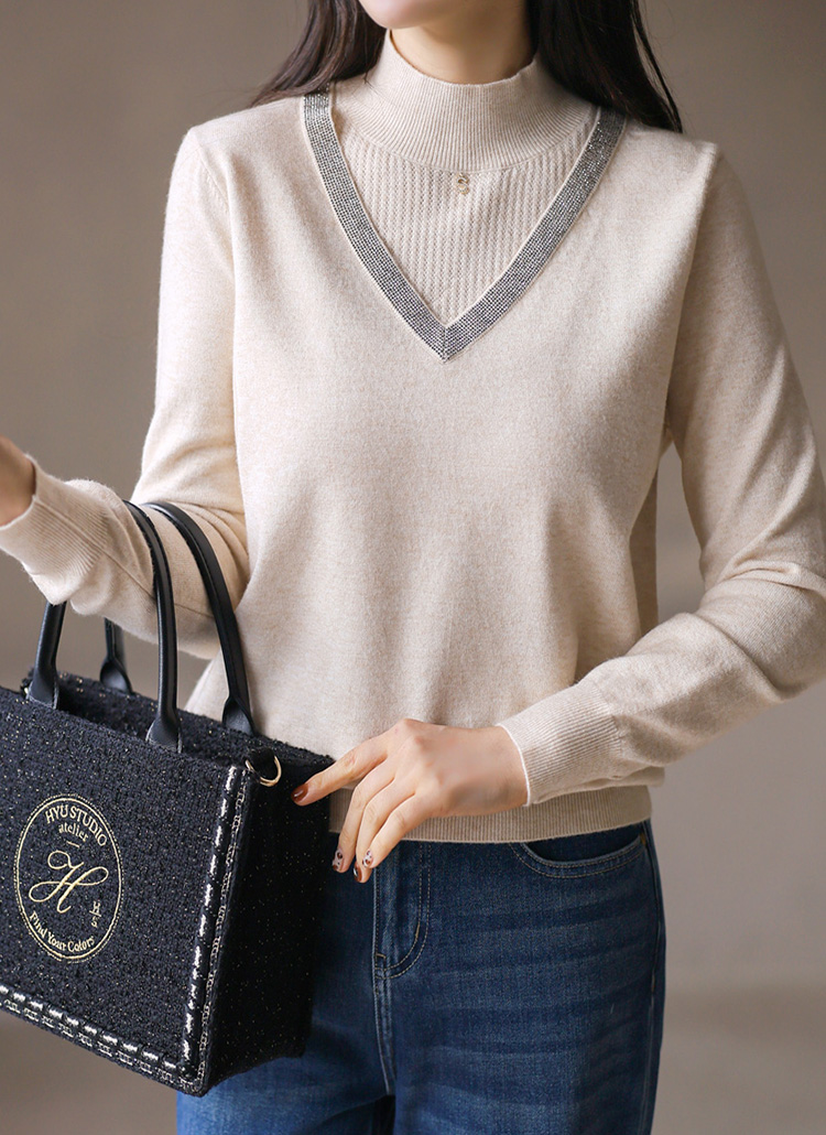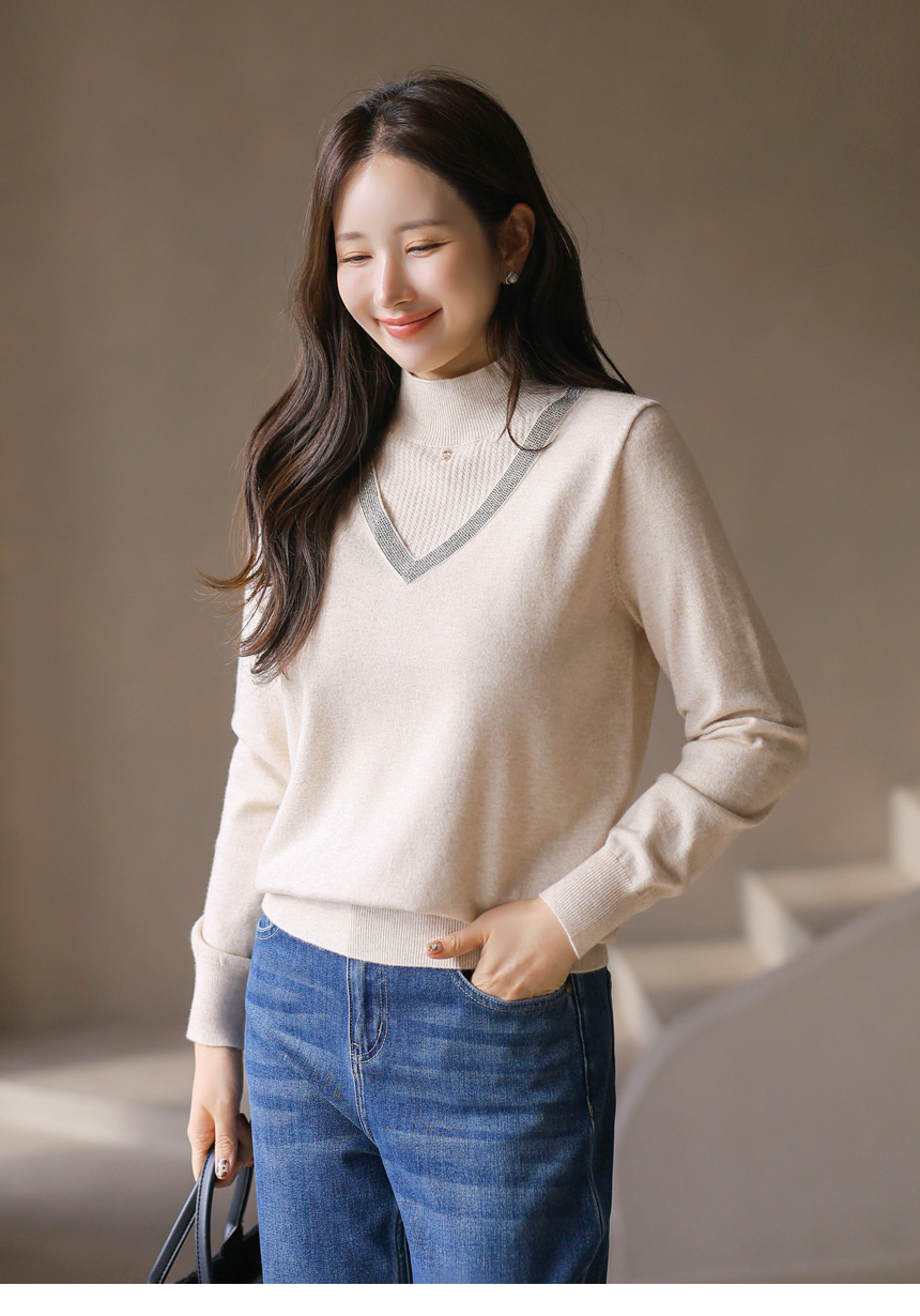 Radiant V-Detail Mock-Neck Layered Knit Top