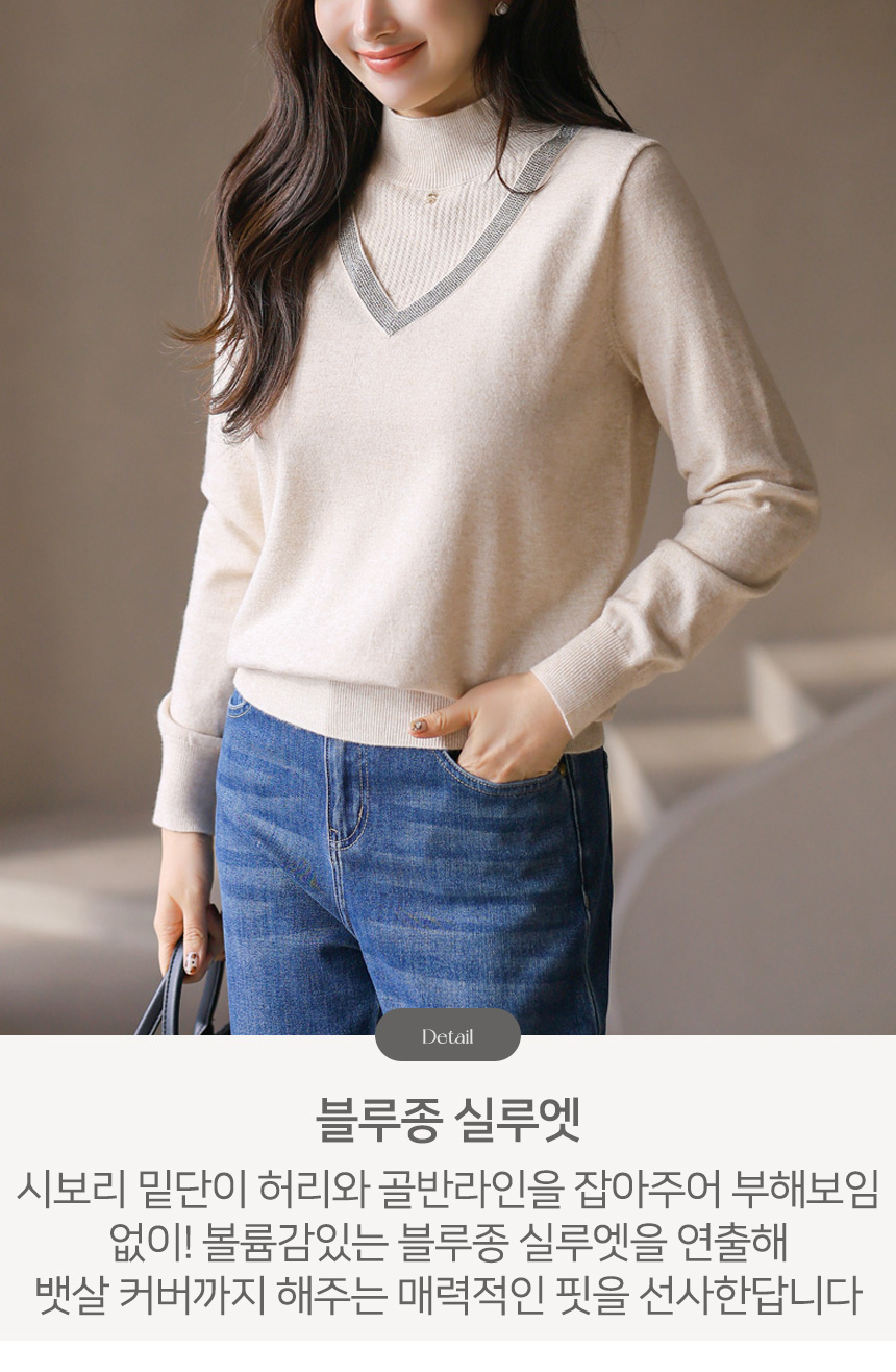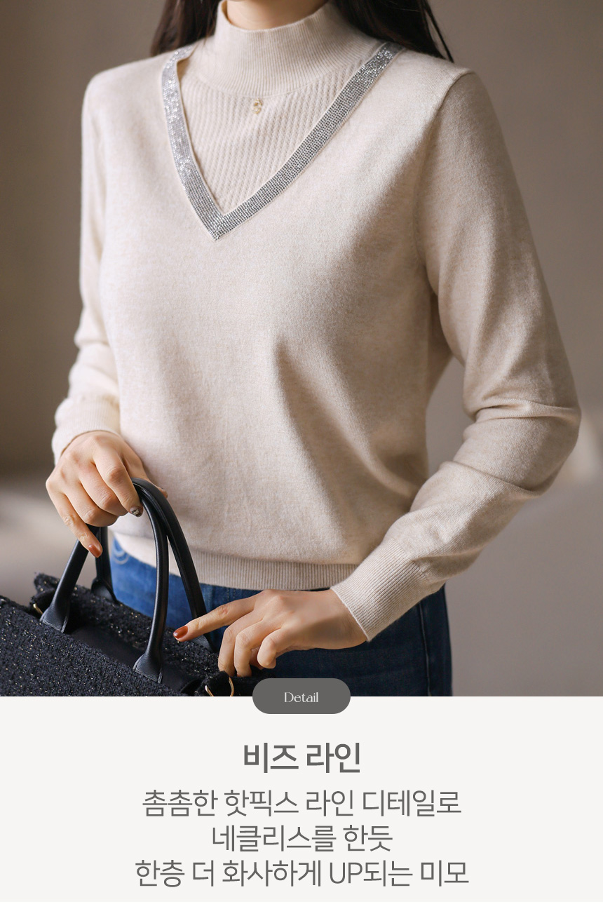 은은한 고급스러움이 느껴지는 레이어드 스타일 반하이넥 니트에요