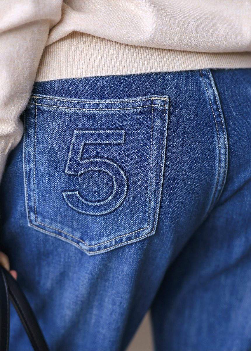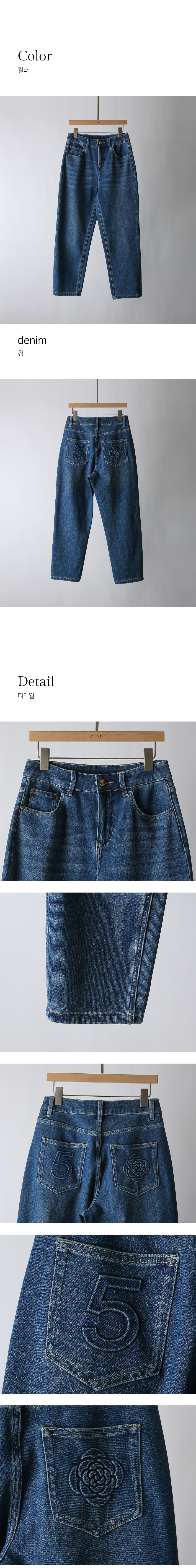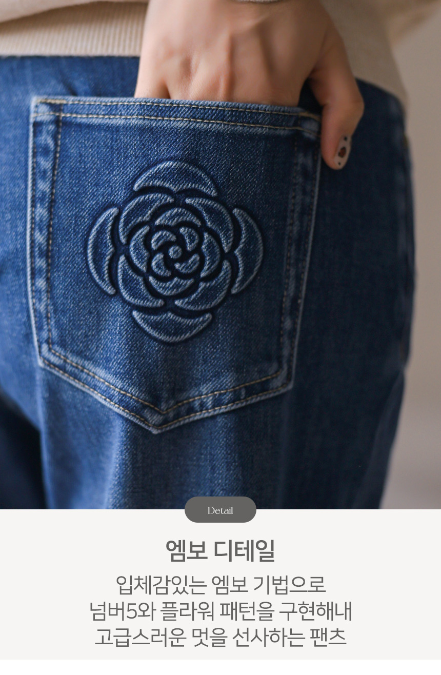 뒷 포켓의 플라워와 넘버5 엠보싱 디테일이