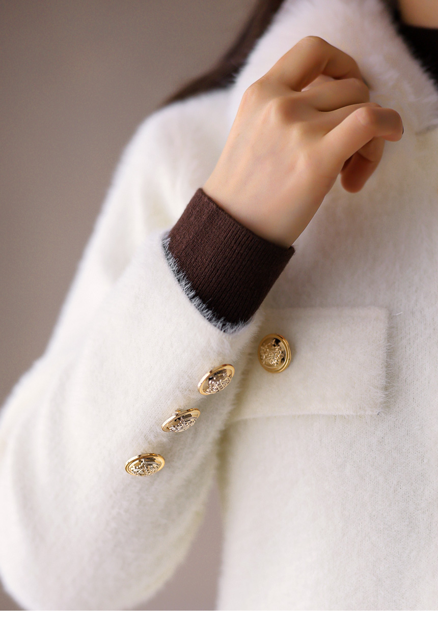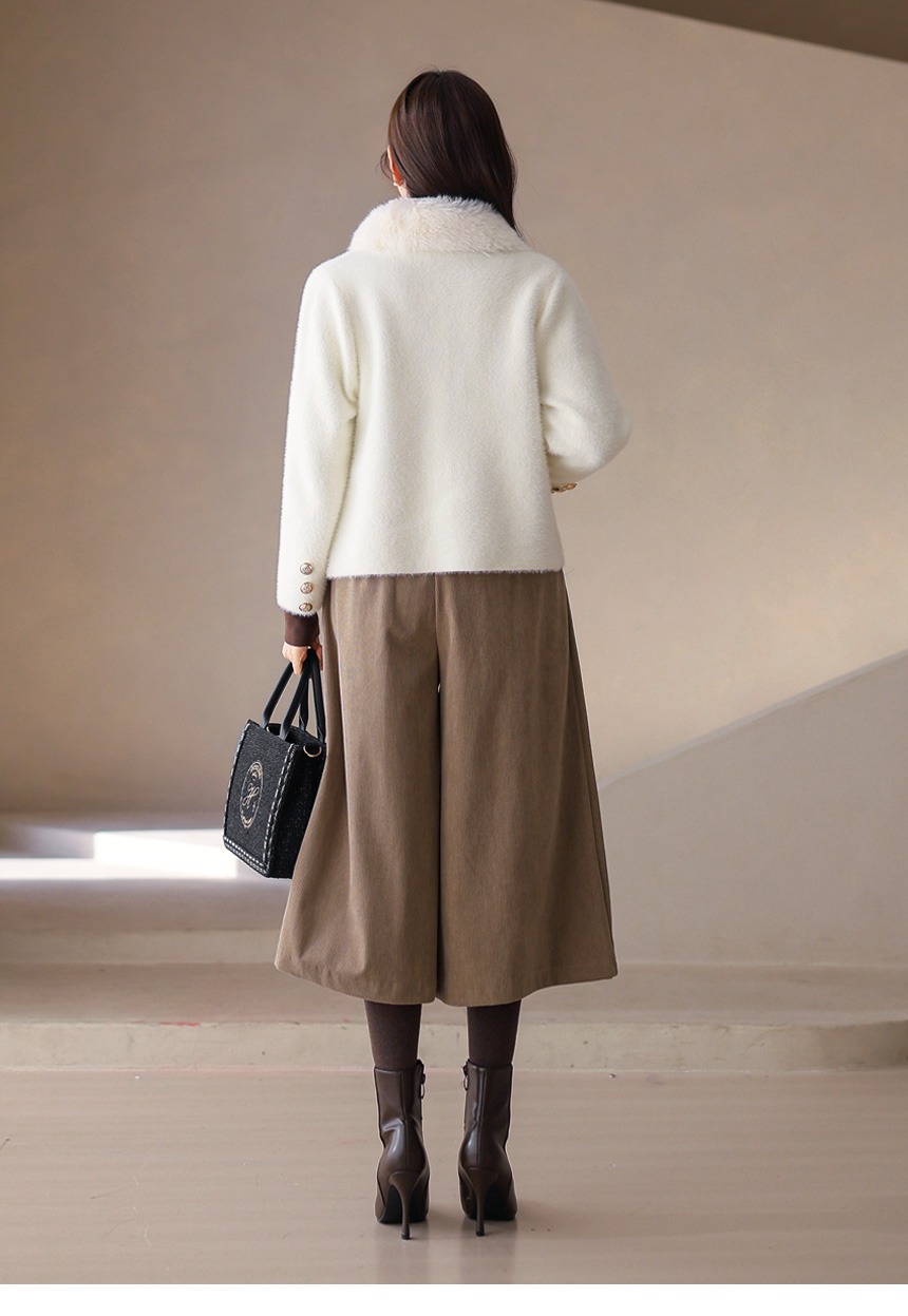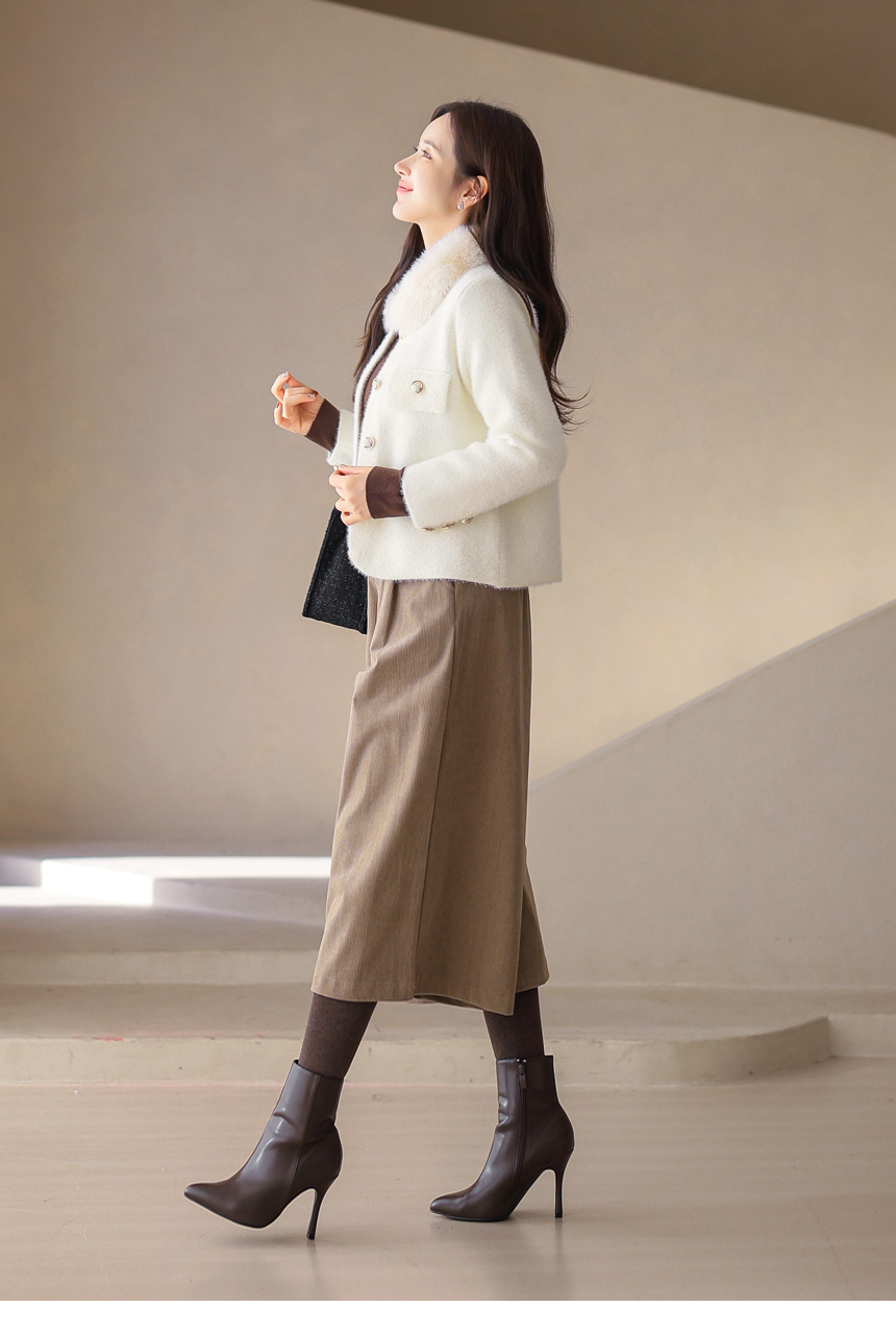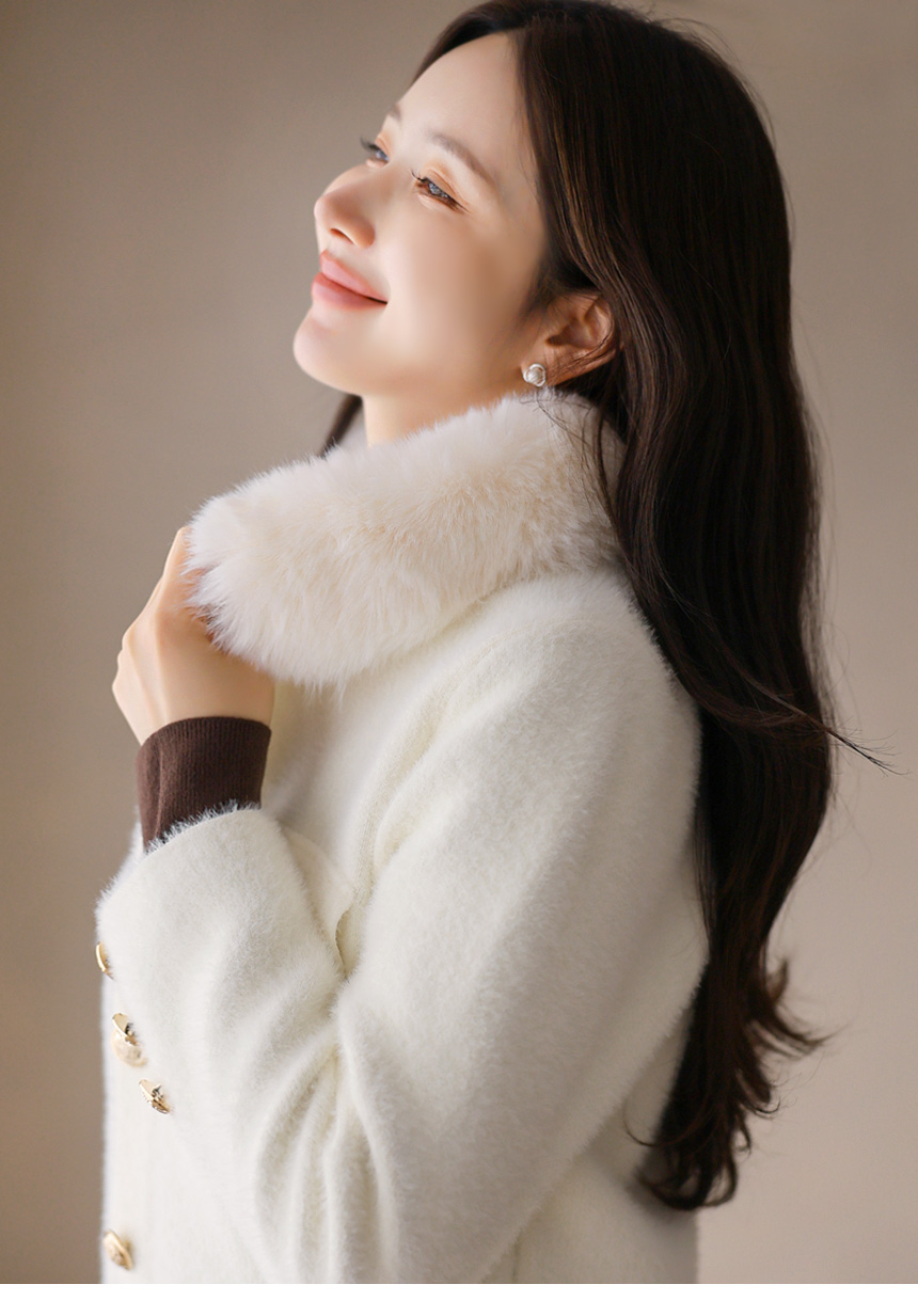 [Light and cozy with luxurious fake fur trim, this fuzzy textured knit cardigan wraps you in gentle warmth and elevates everyday styling with a polished finish.]