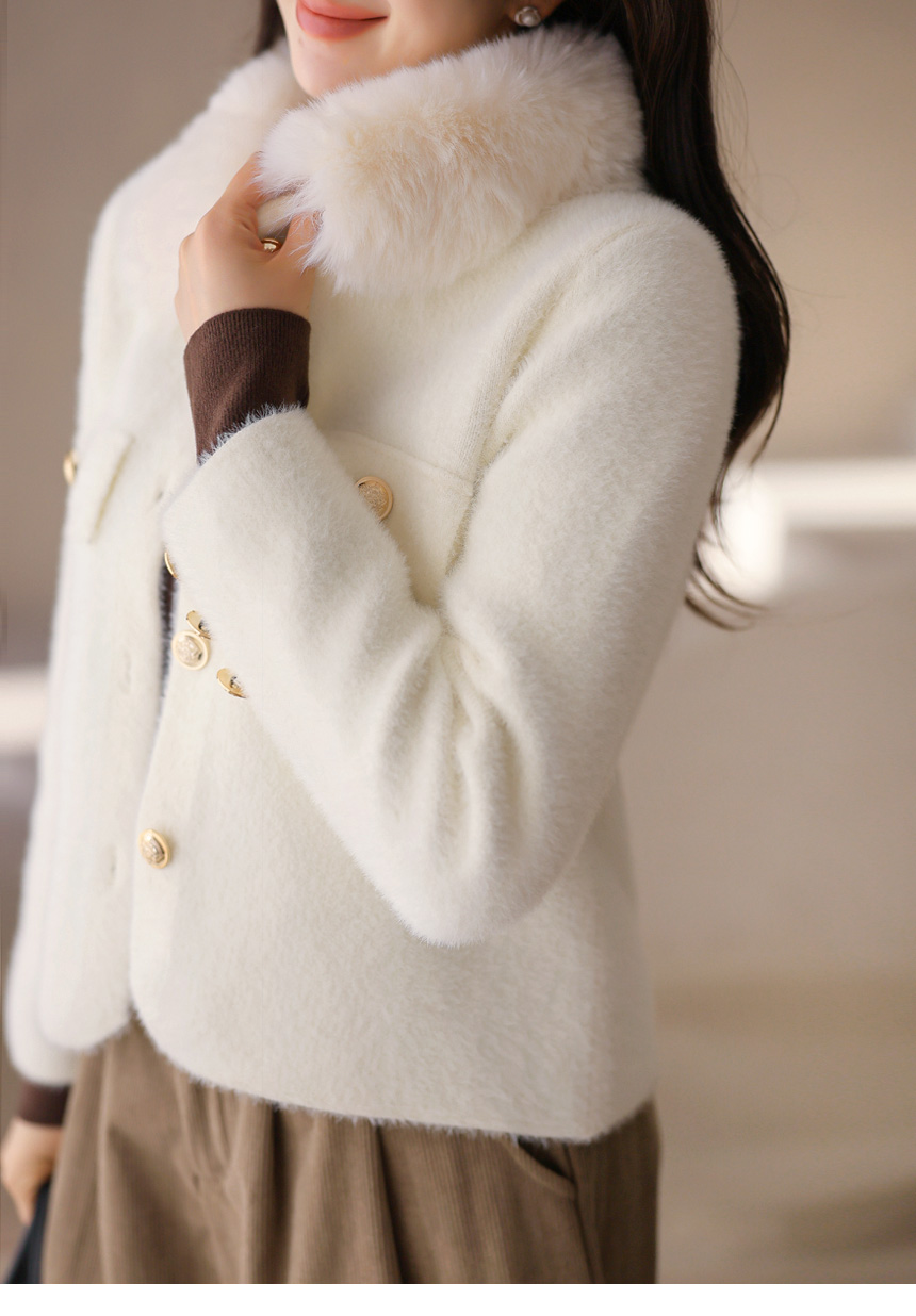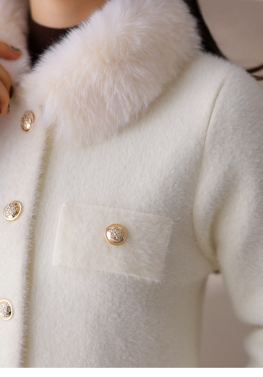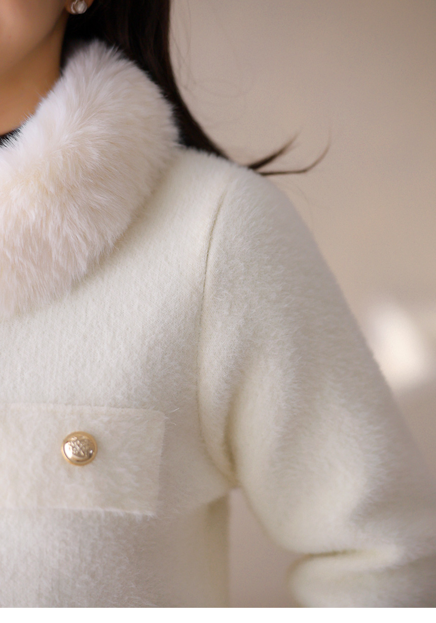 Faux-Fur Collar Fuzzy Textured Knit Cardigan