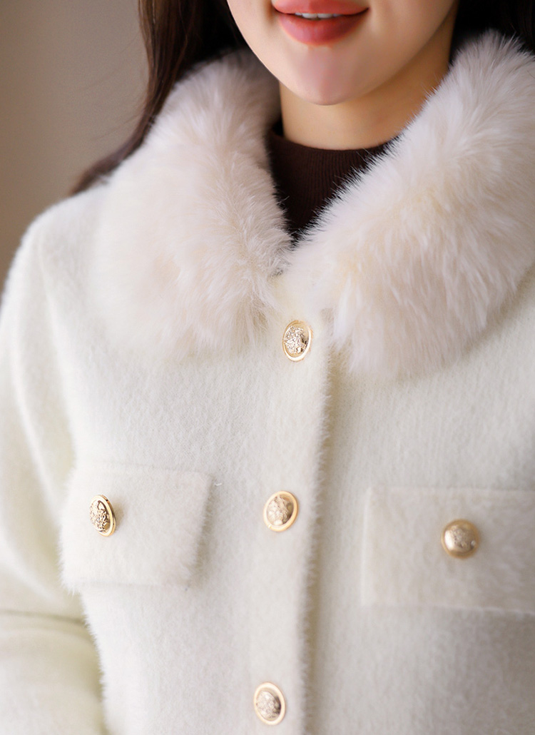 Faux-Fur Collar Fuzzy Textured Knit Cardigan