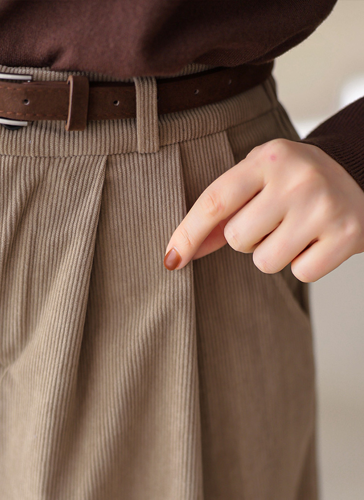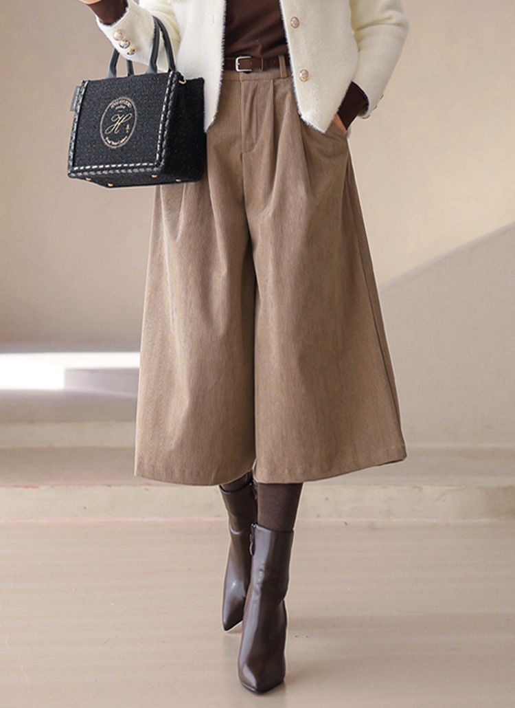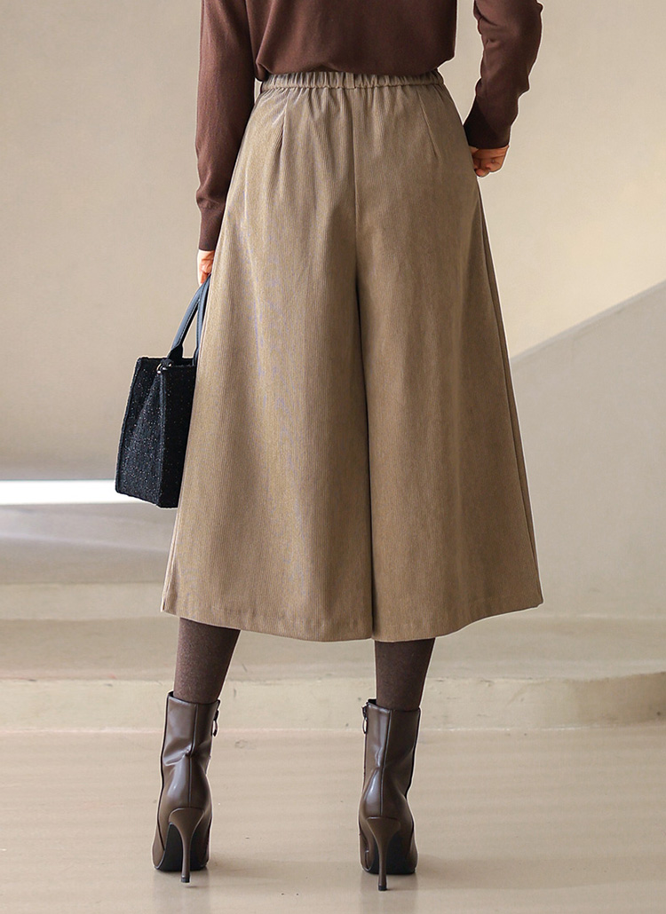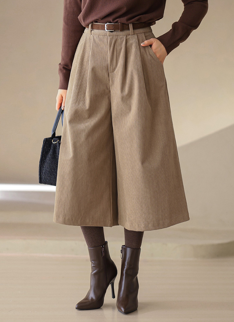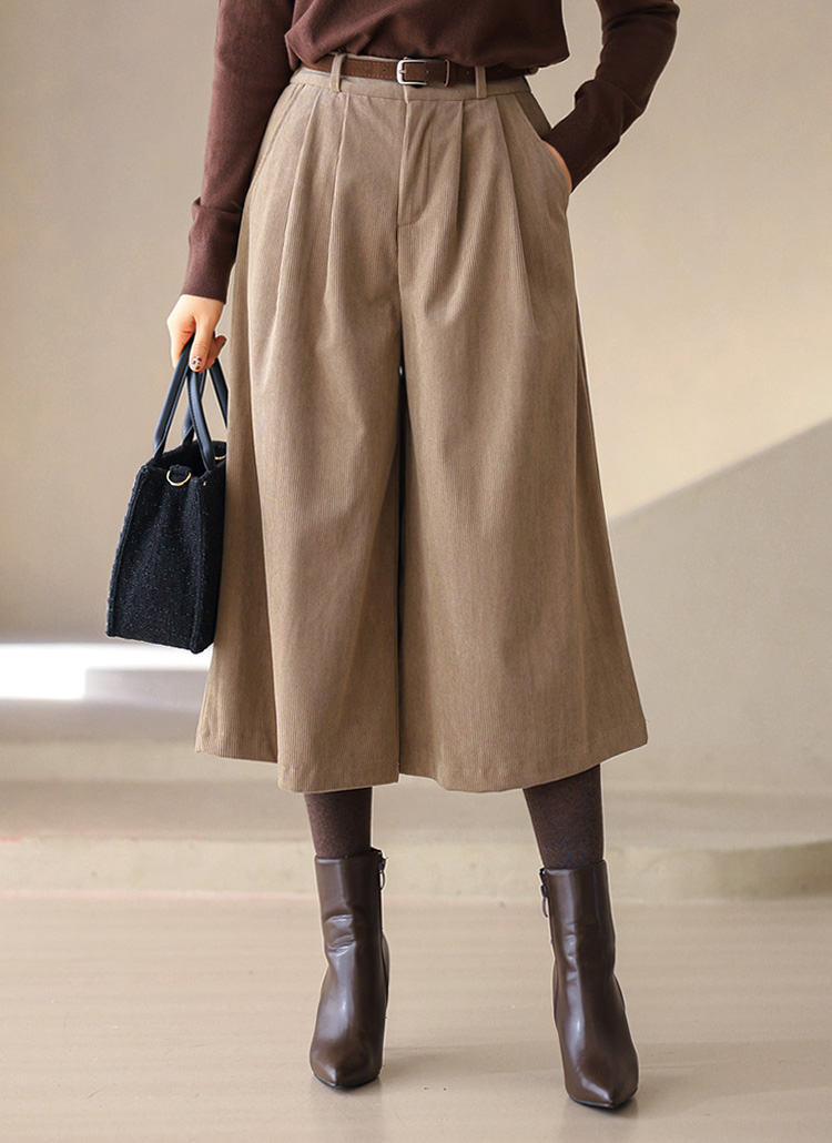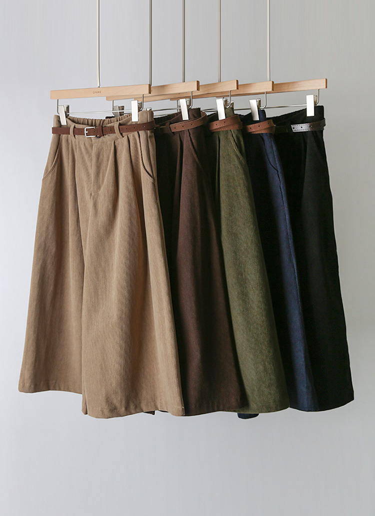 (5 Colors) Belted Cozy Corduroy Culotte Pants