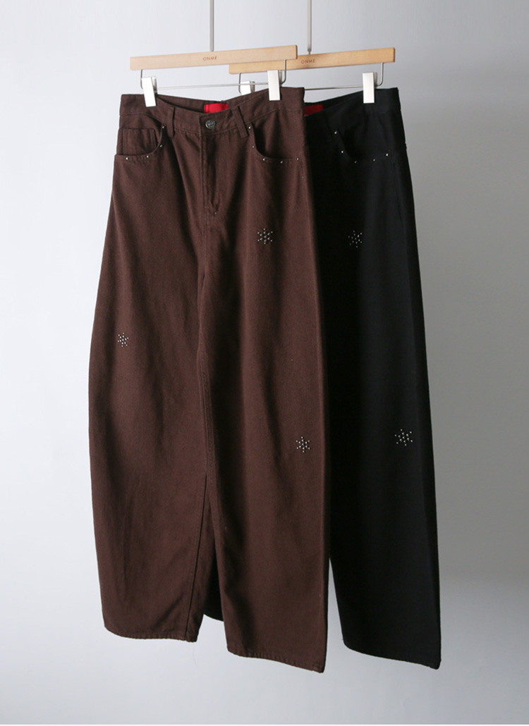 [The Onme] FrostDot Studded Wide Cotton Pants